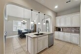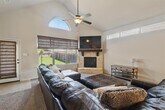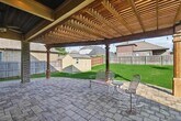 Experience luxury living in this stunning designer home located in the highly sought-after Country Lakes community. The charming entryway greets you with an elegant curved staircase highlighted by Tuscan-style windows. The gourmet kitchen features a spacious granite island, custom cabinetry, and stainless steel appliances, making it a chef's dream. The primary suite offers serene backyard views and connects to a lavish master bath complete with a walk-in tiled shower and soaking tub. A second bedroom and full bath are conveniently located on the first floor. Upstairs, you'll find a media room, game room, and two additional bedrooms, along with a third full bath designed with a Jack-and-Jill layout offering three separate sink and dressing areas. Outdoors, a newly built patio and pergola create the perfect setting for entertaining. Enjoy incredible community amenities, including greenbelt areas, parks, hiking and biking trails, a clubhouse, aquatic center, and beautifully landscaped lakes and waterways.