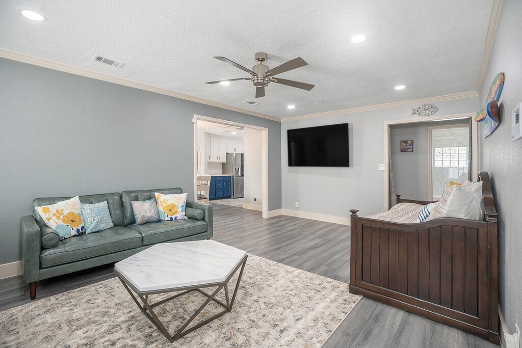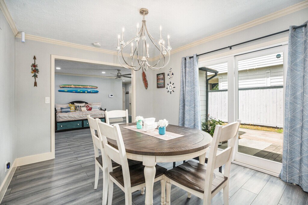 Experience the best of island living in this beautifully updated 4/2,brick ranch home. Just minutes from Broadway and offering effortless access off the island,this renovated partially furnished gem blends coastal charm with modern comfort. Inside,you’ll find a bright,open layout and stylish finishes throughout. A versatile master suite features a cozy fireplace,en suite bath,and private entrance,perfect as a luxurious retreat or a nice family room. Enjoy peace of mind and added convenience with a UV light HVAC system,reverse osmosis water filtration,and an electric gated driveway. The fenced backyard offers a safe haven for your fur babies to roam,and there’s plenty of parking for guests. Situated in a very quiet neighborhood and just 1.2 miles from the Seawall,Kroger,Walmart,Target,Home Depot. 10 mins to Moody Gardens and Schlitterbahn. 12 minutes to UTMB. MLS# 74800869