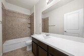 This beautifully maintained 4-bedroom, 3-bath home in the desirable Bradshaw Crossing community offers the perfect combination of comfort and convenience. With a main-level guest room and full bath, it’s ideal for visitors or multi-generational living. The open-concept kitchen with an island flows effortlessly into the spacious living and dining areas, providing a great space for gatherings and entertaining. Upstairs, you'll find a versatile bonus room, perfect for an office, playroom, or media room, along with the primary bedroom suite, two additional bedrooms, a bathroom, and a laundry room with washer and dryer included. The primary suite is a true retreat, featuring a dual vanity, full tub, walk-in tiled shower, and a large walk-in closet. Enjoy the privacy of a fenced backyard with a covered porch — perfect for relaxing outdoors. Bradshaw Crossing also offers fantastic community amenities, including a pool and walking trails. Conveniently located just 13 miles from Austin-Bergstrom International Airport, 12 miles from Downtown Austin, and only 4 miles from Southpark Meadows and IH-35, this home provides easy access to shopping, dining, and outdoor activities. Don’t miss out on this incredible leasing opportunity in a vibrant community—schedule a tour today!