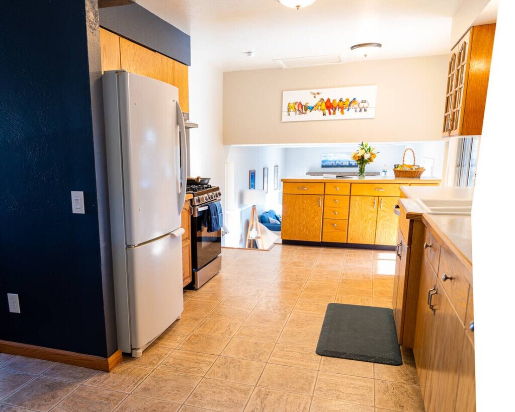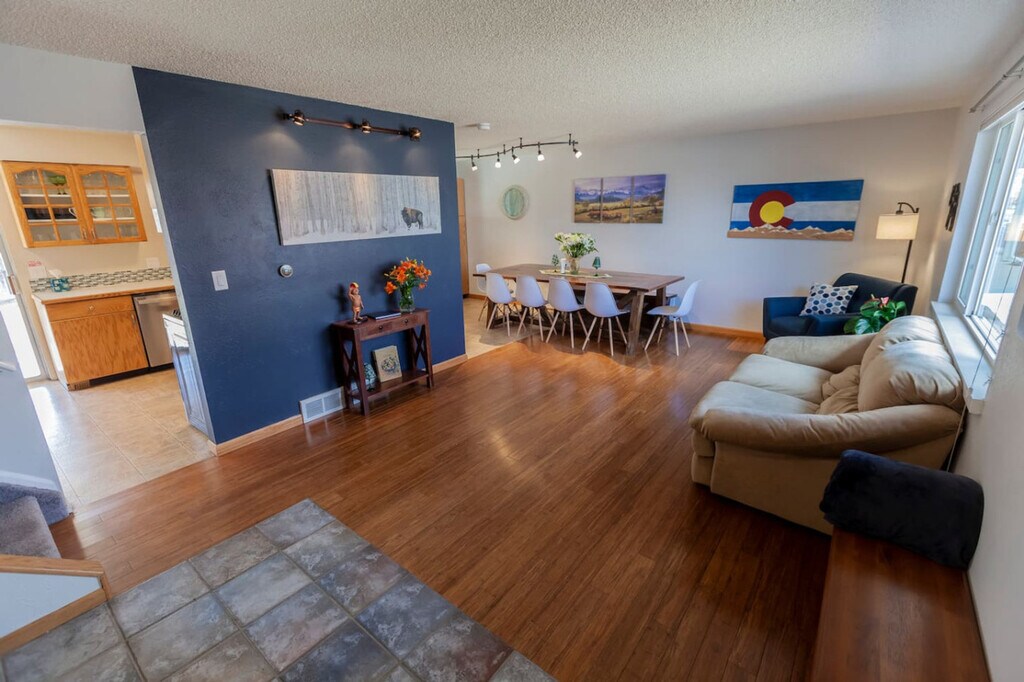 Feel at home in this newly renovated 3-bedroom, 3-bathroom house near Boulder and Denver, offering easy access to the mountains. This spacious and private house is great for families, work, and play. All furniture and décor are new. The fully stocked kitchen includes a brand-new gas range and dishwasher, spacious fridge/freezer, Keurig coffee maker, toaster oven, microwave, knives and cutting board, glasses, flat-wear, and cooking utensils. It is stocked with coffee, tea, sugar, creamer, food, and snacks. The den includes a large TV, brand new sectional sofa, and comfy chair, along with a soundbar that you can use with the TV or play music from your device with Bluetooth or an aux cord. The main bathroom includes a large rain-head shower, tub, and marble floating vanity, and is stocked with plenty of towels, toiletries, and a hair drier. The master bath has a standing shower, and all bathrooms have tile floors. There is a good-sized backyard and covered patio, as well as a ping pong table, darts, laundry, fast Wi-Fi, and 3 TVs with cable/streaming. You have access to a two-car garage and driveway. Located in the cozy, safe, and quiet Sheridan Green Neighborhood of Westminster, this house is steps from a beautiful park and open space with mountain views. The park includes a creek, pond, woodlands, multiple bike and walking trails, large public sports fields, and an 18-hole frisbee golf course, as well as a nearby public recreation center with a pool, gym, racquet ball, and basketball courts. You are within walking or a short driving distance to many restaurants, convenience stores, grocery stores, and bars. This home is 20 minutes from downtown Denver, 20 minutes from downtown Boulder, and 1.5 hours from most ski areas. The 1STBANK Center is only 2 miles away, and the Westin Hotel is less than a 10-minute walk. Quiet time is from 10 pm to 8 am, and guests should be respectful of neighbors. Smoking inside is prohibited, and there is a $500 fee for violations. Unauthorized late check-out will incur a fee of $75 per hour. Guests who cause damage will be charged the cost of repairs. Guests who fail to follow house rules may be asked to leave without refund. Includes a standing desk. [SI]