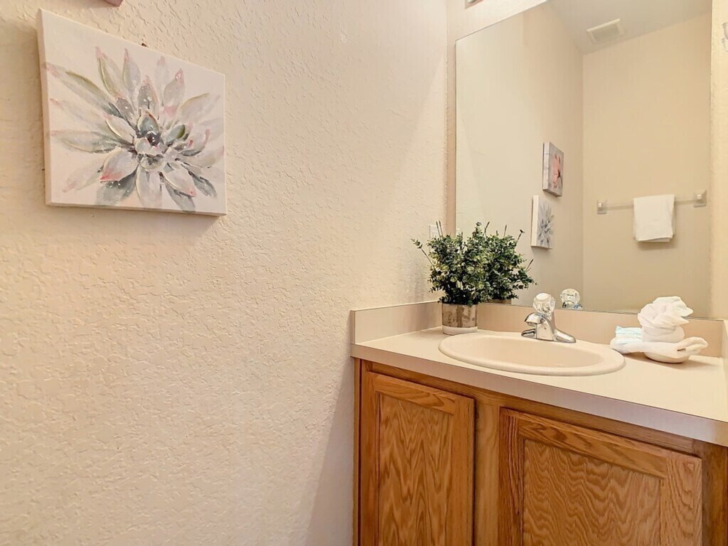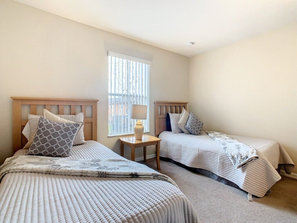 Welcome to The Martinique at Regal Oaks! This 4-bedroom, 3.5-bathroom townhome offers 1,910 sq ft of lakeside living, just 3 miles from Disney. Relax in the spacious living areas, cook in the fully equipped kitchen, and enjoy resort-style amenities. Nestled behind Old Town, enjoy dining, shopping, and entertainment within walking distance. Perfect for families or groups, this home combines comfort, convenience, and stunning views for an unforgettable stay. A bright, airy living room with plush seating, a flat-screen TV, and large sliding doors that open to a serene patio is perfect for movie nights or unwinding after a day at Disney. The elegant dining area features a table with seating for six beneath a charming chandelier. The fully equipped kitchen boasts modern appliances, ample counter space, and all the tools needed to whip up family favorites or quick snacks. The bedrooms include a master bedroom with a luxurious king-size bed, flat-screen TV, and private bathroom with a garden tub, a queen bedroom with a comfortable queen bed and soft linens, and two twin bedrooms each with two twin beds, cozy decor, and ample light. Three full bathrooms and a half-bath are all sparkling clean and equipped with essentials. Enjoy your morning coffee or evening wine on the private balcony or screened patio overlooking tranquil lake views. A washer and dryer are included for your convenience, making longer stays stress-free. Guests will enjoy resort amenities and dedicated parking, although RVs or trailers are not permitted. Cleaning fees apply for stays under 7 nights, with mid-stay cleaning available at an extra charge. Extras such as grills, pack-and-plays, or high chairs are available for rent. Regal Oaks is located just 3 miles from Disney and a short drive to SeaWorld, Universal Studios, outlet shopping, and world-class golf. Situated directly behind Old Town, you’re steps away from restaurants, bars, specialty shops, and family-friendly entertainment. Check-in is at 4:00 PM and check-out is at 10:00 AM, with flexible options available with 48-hour notice. This is a self-catering home, so guests provide food, condiments, toiletries, and additional supplies. A guest screening process will be conducted to confirm your reservation. [SI]