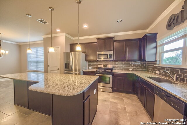 Welcome to this stunning rental home located in the desirable Alamo Ranch community! This spacious 4-bedroom, 3.5-bathroom property offers just over 2,900 square feet of comfortable living space and is available for immediate move-in perfect timing to settle in just before the Christmas holiday season. The primary suite is conveniently located downstairs and boasts generous dimensions (15x14), along with a large spa-like bathroom featuring dual vanities, a soaking tub, a separate shower, and a walk-in closet designed for maximum storage and organization. Upstairs, you'll find all secondary bedrooms, each offering ample space and comfort. The second floor also provides multiple living areas, including a versatile game room and a dedicated media room ideal for family movie nights, entertaining guests, or simply relaxing after a long day. The open-concept kitchen seamlessly connects to the dining and living areas, making it perfect for both everyday living and hosting gatherings. High ceilings and natural light enhance the welcoming atmosphere throughout the home. Step outside and enjoy a large covered patio, an excellent spot for outdoor entertaining, weekend barbecues, or relaxing with family and friends.