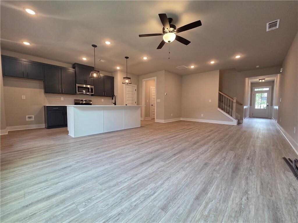 BRAND NEW TOWNHOUSE - 4 BEDROOM AND 2.5 BATHROOM - Sweetwater floor plan with a covered screened-in back porch,a 4 bedroom design in the gated community of Parkstone Row in Tucker,GA. Parkstone Row is also located in the highly regarded Parkview High School District,making it a top choice for renters seeking quality schools and convenience. The homes in Parkstone Row feature a premium list of modern finishes that outshine the competition. Brick exteriors with cedar accents,3/4 view front doors. Inside,you'll find designer kitchens with quartz countertops,shaker-style cabinetry,stainless steel appliances,subway tile backsplash,and pendant lighting over the island. High-end details continue throughout with 1x6 baseboard trim,1x4 door casings,1x4 window surrounds,5-panel interior doors,flat-panel wainscoting in the foyer and dining area,black hardware and fixtures,oak site-finished stained hardwood stairs,and fully tiled master showers on the floor and walls with frameless glass doors. LVP flooring extends through the main level and continues upstairs in the common areas,providing both durability and style where it’s often overlooked. Both levels feature 9-foot ceilings,and the main level is enhanced by 6-foot-tall windows that fill the space with natural light. Each home also includes an electric vehicle charging outlet. HOA dues cover lawn maintenance,termite bond,and select exterior building maintenance,offering a low-maintenance lifestyle in a secure,gated setting.