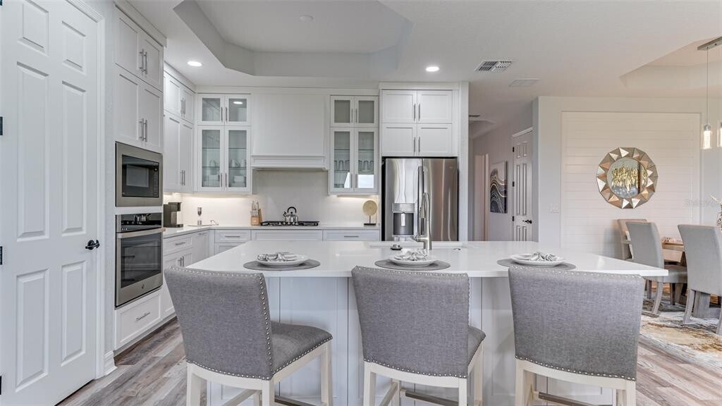 LAKEWOOD NATIONAL GOLF - LUXURY FURNISHED EXECUTIVE HOME BACKING ONTO GOLF COURSE - 3 BEDROOM - 2.5 BATH - 2 CAR GARAGE - HEATED POOL & SPA - Experience unparalleled luxury in this exquisite 3-bedroom,2.5 bathroom executive home located in Lakewood National,a premier gated golf community in Lakewood Ranch,Florida. This stunning residence showcases an open floor plan,designer kitchen,and high-end finishes,embodying sophistication and style. Savor breathtaking golf course vistas from your private lanai or unwind at the resort-style community pool. Exclusive amenities feature 2 world-class golf courses,state-of-the-art fitness center,and lively social clubs. Immerse yourself in the ultimate Florida lifestyle,surrounded by lush landscapes and exceptional leisure opportunities. High Season: $12,000/month - Low Season: $6,000/month. $100/month minimum food consumption obligation with membership. HIGH SEASON: HIGH SEASON: NOVEMBER thru APRIL. LOW SEASON: MAY thru OCTOBER. Minimum 4 month lease during high season. From 175 and SR70 - head east 5 miles to Uielhein Rd - then north 1/2 mile to Lakewood National guardhouse on the right hand side. MLS# A4553727