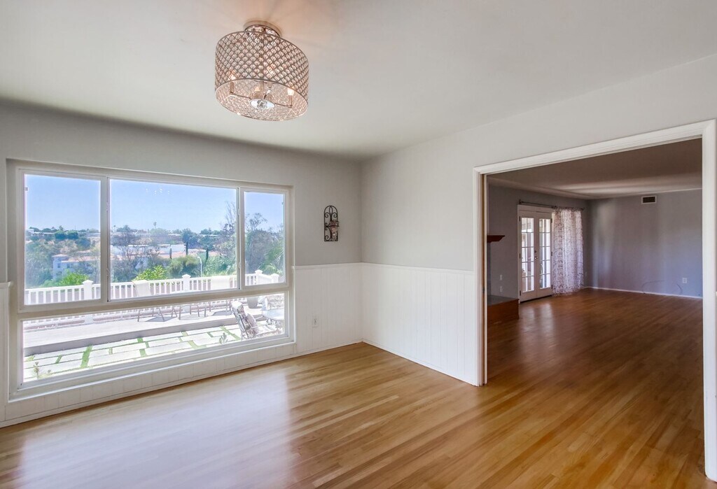 This wonderful SINGLE FAMILY home and a 1 bedroom 1 bath apartment over the garage in Del Cerro This home is perfect for a family. Rent is $6200.00 per month The main house has 4 BEDROOMS AND 2 BATH. The kitchen has been remodeled with quartz countertops, new flooring, new gas stove and microwave and freshly painted. Walk into the large living room with wood burning fireplace, great for family gatherings. There is a dining room that is big enough for family dinners. There are 3 nice size bedrooms on the right of the home and one bedroom and bath on the left side of the home. Nice for Parents or in laws. All the flooring in this home has just been upgraded to oak wood flooring. Ceiling fans throughout the home. The backyard is inviting with a large covered patio for hot summer days and an uncovered patio. Lots of space for the children to play. The back yard has a view to the east and families will enjoy outdoors. Refrigerator and washer and dryer are included. 2 car attached garage. Small dog under 30lbs ok. Central Air Unit 2 Very nice quiet one bedroom, one bath unit over garage of the single family home with its own private entrance. Freshly painted , New vinyl flooring throughout. Refrigerator included. Ceiling fans in Bedroom and living room. Nice kitchen. Large living and eat in area. Nice size separate bedroom and bath. Newer windows. Upper unit. Parking is on the street. New A/C mini split. Small Dog under 30 lbs ok. No Smoking. These units are close to shopping, Mission Valley, Fashion Valley and easy drive to Downtown. There is a $35. deposit. This property is managed by Ranch and Sea Management. An appointment must made to see this property. To Qualify for this home: Tenants must have a FICO score of 700+ Income must be 3 times the rent. No Bankruptcies No Co signers