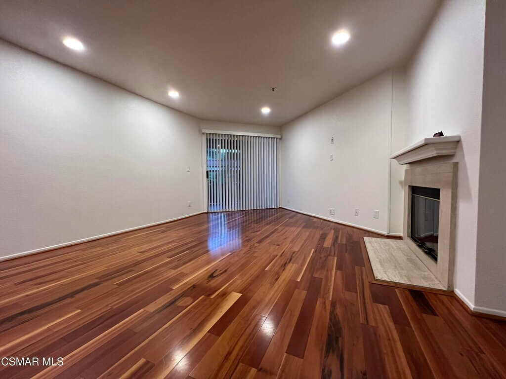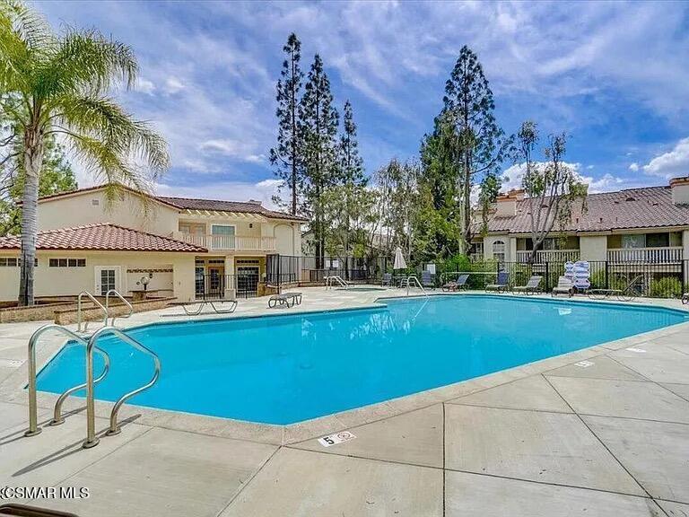 Welcome to this beautifully situated first-floor end unit, tucked away at the back of the highly sought-after Shadow Ridge community. Located at the end of the street and bordering open space, this home offers a serene, park-like setting with the calming sounds of seasonal streams--perfect for relaxed, resort-style living.The bright and spacious floor plan features two generously sized bedrooms, each with access to a covered patio. The primary suite includes a walk-in closet, while the inviting living room showcases a cozy fireplace and wood-like flooring throughout. Additional highlights include tiled kitchen and bathroom floors, recessed lighting, and an in-unit washer and dryer for everyday comfort and convenience.Shadow Ridge offers outstanding community amenities, including a pool, spa, tennis courts, racquetball, basketball courts, and a fully equipped gym. Includes cable, Wi-Fi, trash service, and access to all amenities. Enjoy nearby dog parks and community concerts at the park, adding to the vibrant lifestyle.Situated within the award-winning Oak Park Unified School District, this home blends tranquility, convenience, and exceptional lifestyle appeal in one of Oak Park's most desirable communities.A rare opportunity to enjoy quiet, resort-style living in a prime Oak Park location.
