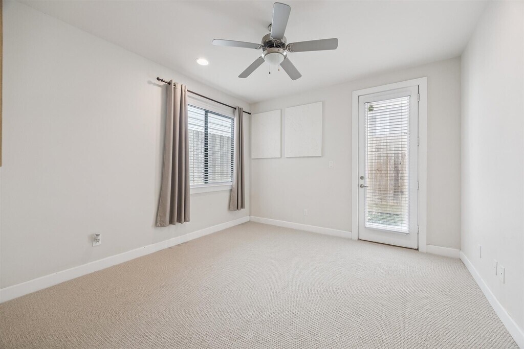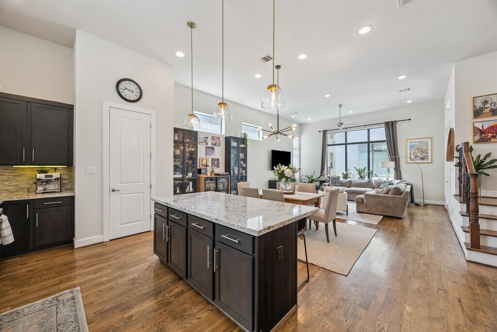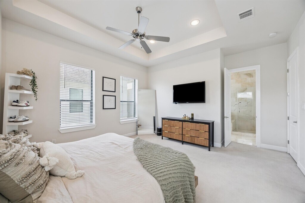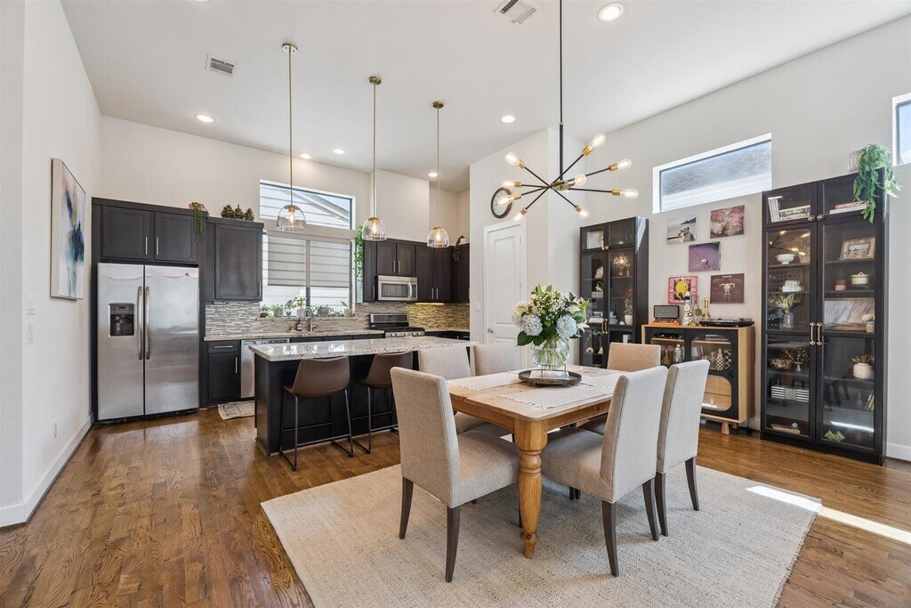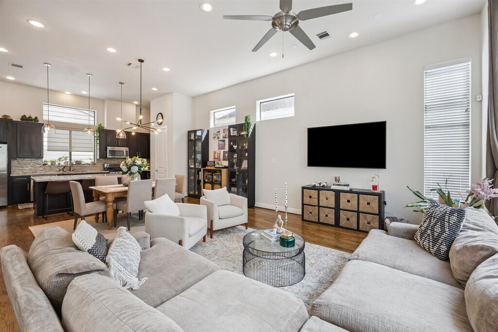 Welcome to this beautifully maintained freestanding home nestled in a quiet,sought-after community in Cottage Grove-just minutes from Houston's top destinations inside the Loop. Situated on a desirable corner lot,this modern residence offers 3 bedrooms,each with its own private en-suite bath. The 1st floor features a bedroom with French doors opening to cozy fenced back and side yard. A two-car garage adds convenience & storage. Upstairs,the 2nd floor boasts an open-concept layout with soaring ceilings & an outdoor balcony,both ideal for entertaining. The chef's kitchen is equipped with granite countertops,a gas cooktop,stainless appliances & a central island with bar seating. The third floor primary suite is a true retreat,the primary bath is complete with dual vanities,a soaking tub & a generous walk-in closet. Additional highlights include wood tread stairs with iron railings,no HOA fees and unbeatable access to Downtown,the Heights,Washington Corridor & Memorial Park. MLS# 84453825