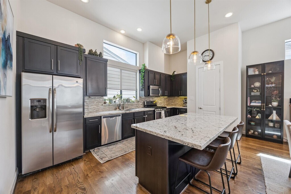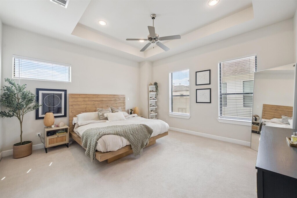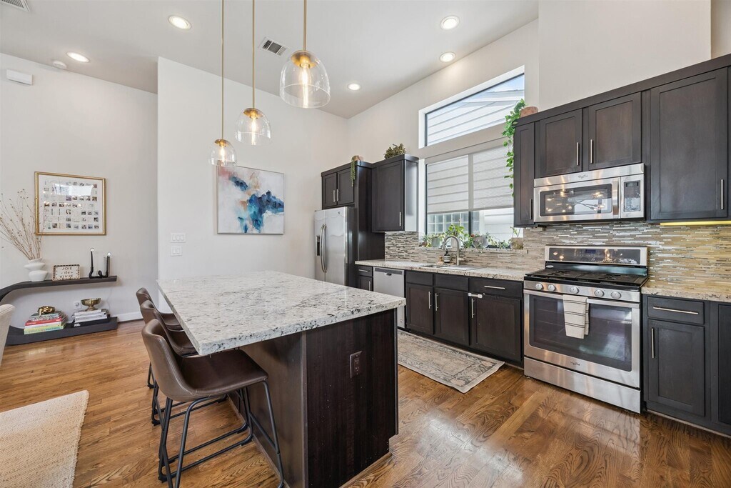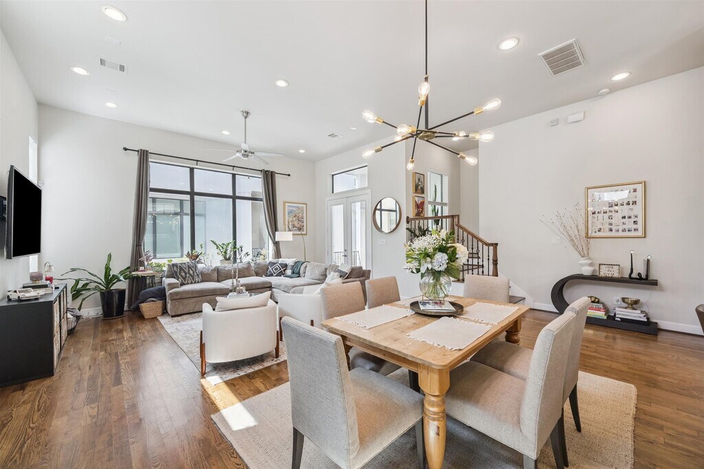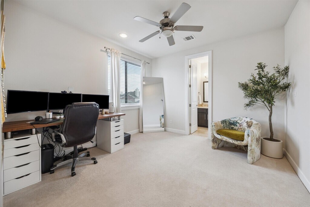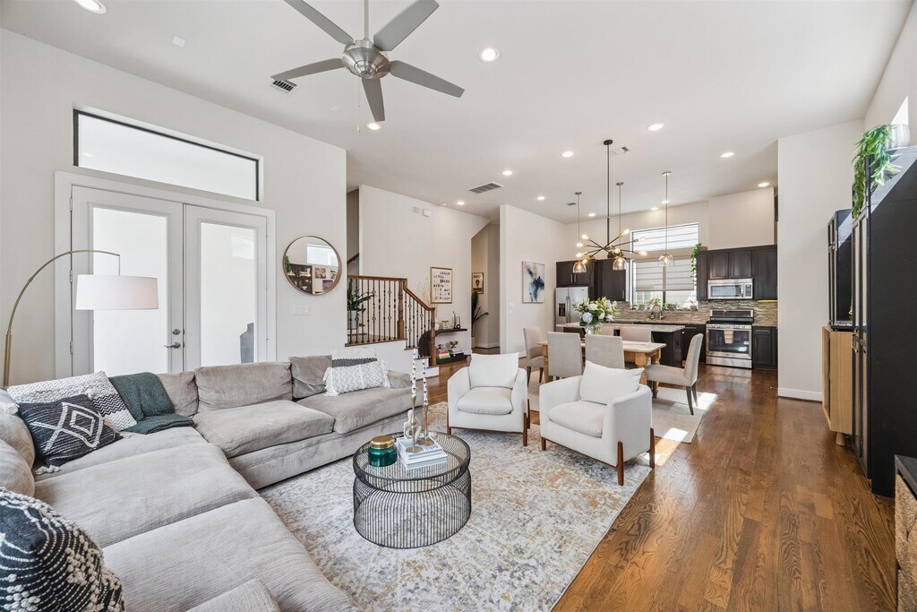 Welcome to this beautifully maintained freestanding home nestled in a quiet,sought-after community in Cottage Grove-just minutes from Houston's top destinations inside the Loop. Situated on a desirable corner lot,this modern residence offers 3 bedrooms,each with its own private en-suite bath. The 1st floor features a bedroom with French doors opening to cozy fenced back and side yard. A two-car garage adds convenience & storage. Upstairs,the 2nd floor boasts an open-concept layout with soaring ceilings & an outdoor balcony,both ideal for entertaining. The chef's kitchen is equipped with granite countertops,a gas cooktop,stainless appliances & a central island with bar seating. The third floor primary suite is a true retreat,the primary bath is complete with dual vanities,a soaking tub & a generous walk-in closet. Additional highlights include wood tread stairs with iron railings,no HOA fees and unbeatable access to Downtown,the Heights,Washington Corridor & Memorial Park. MLS# 84453825