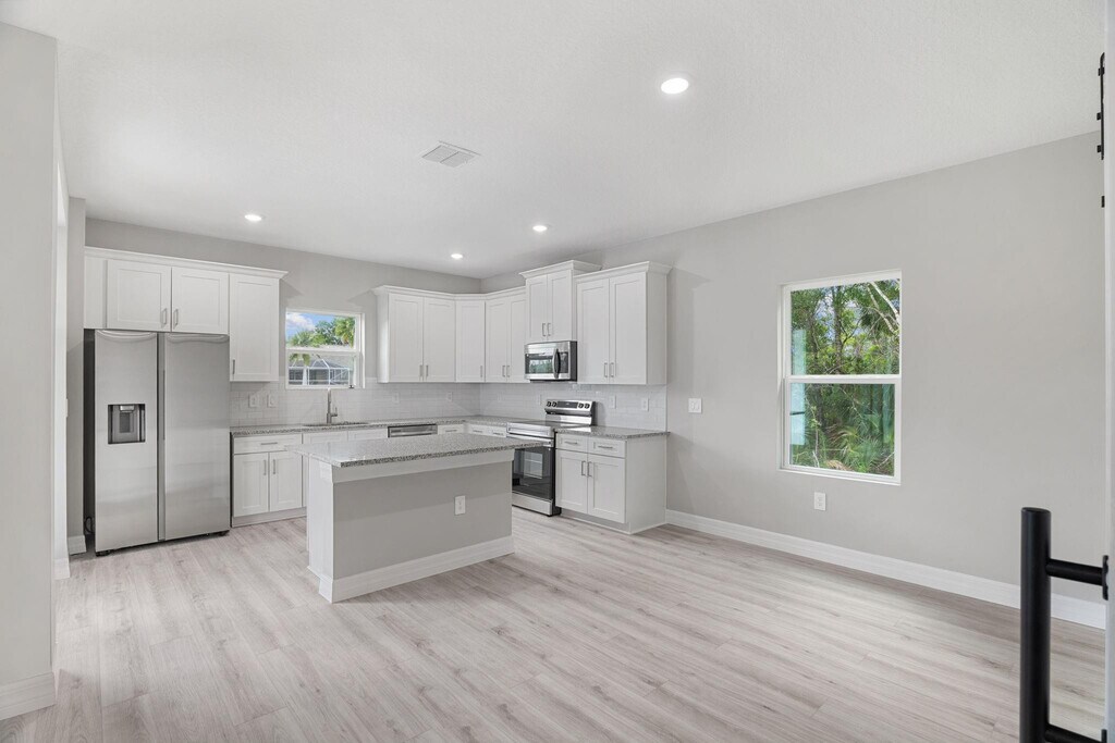 Beautiful BRAND NEW home,This exquisite 2,092-square-foot residence sits on a 0.24-acre lot fronting a beautiful,wide canal. The home features 4 bedrooms,3 bathrooms,and a 2-car garage,setting a new standard for refined living. Kitchen outfitted with Samsung stainless steel appliances,a spacious center island,and striking Bengal Granite countertops paired with classic subway tile backsplashes. Beautiful Reef Gold vinyl plank flooring runs seamlessly throughout the home,replacing carpet. Rent is responsible for water,electricity,and landscaping. Rents are due on the 1st of the month. Pets are welcome. There is a non-refundable $300 pet fee; you must provide the breed and weight of your pet. The rent needs a 620 FICO credit score or higher. Make this your home now. MLS ID F10535493