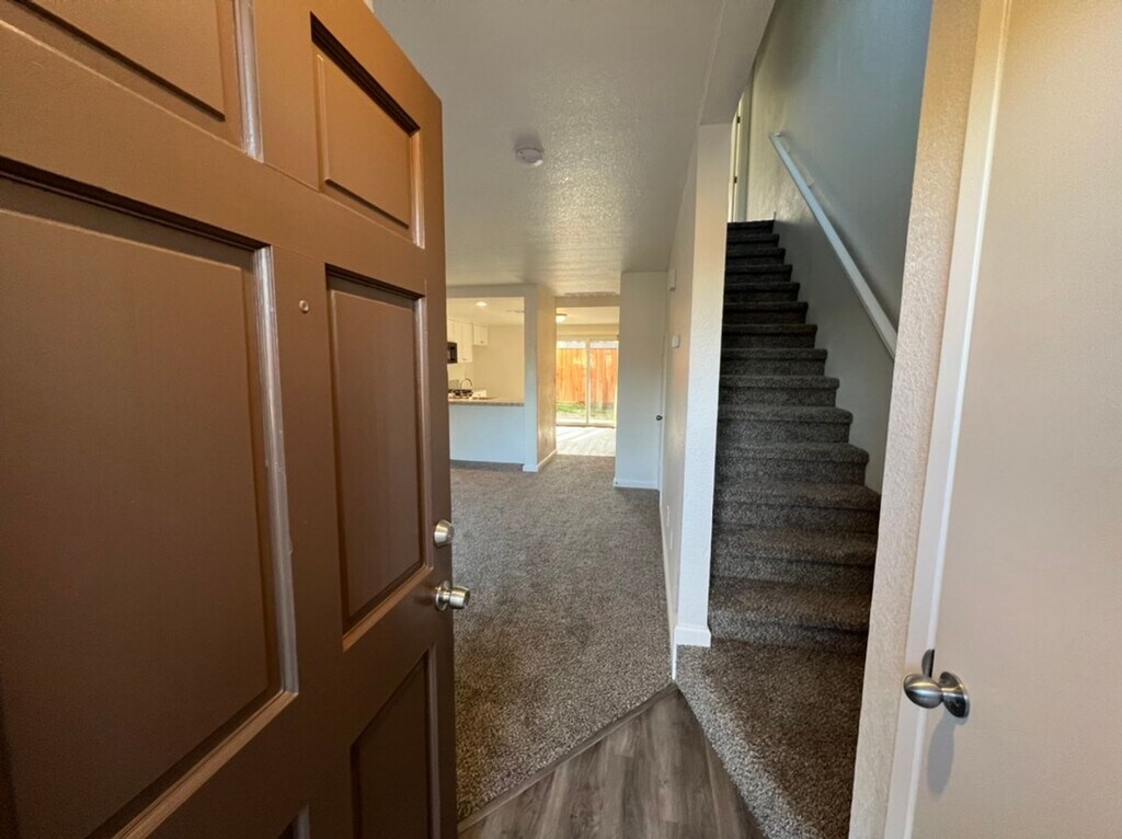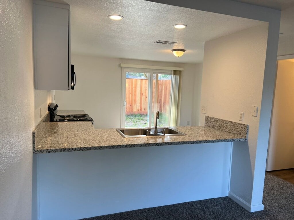 Two story condo located in east Modesto's Villas at Creekside community. This unit has been recently remodeled! Newer dual pane windows throughout, newer cabinets, counters, bathrooms and more! Check out the video on our YouTube channel! Step into a spacious living room with large picture window that opens to the kitchen that has granite counters with bar area. Inside laundry closet accommodates full size washer and dryer. Half bathroom located downstairs. Large low maintenance back patio area. Newer central heat and air! Upstairs there are two bedrooms with a full bathroom. The master bedroom has its own private vanity and double closets. One covered parking space included. Water, sewer and garbage paid by the landlord. Pets are subject to approval with modified terms. $1945/month with a one-year lease and $2000 security deposit. Please apply online where there is a $50 non-refundable application fee per applicant over the age of 18. Anyone over the age of 18 is required to complete their own separate application. Please visit our website at or call for more information. Five Star Property Management Lic# 01 Wylie Dr Modesto, CA 95355