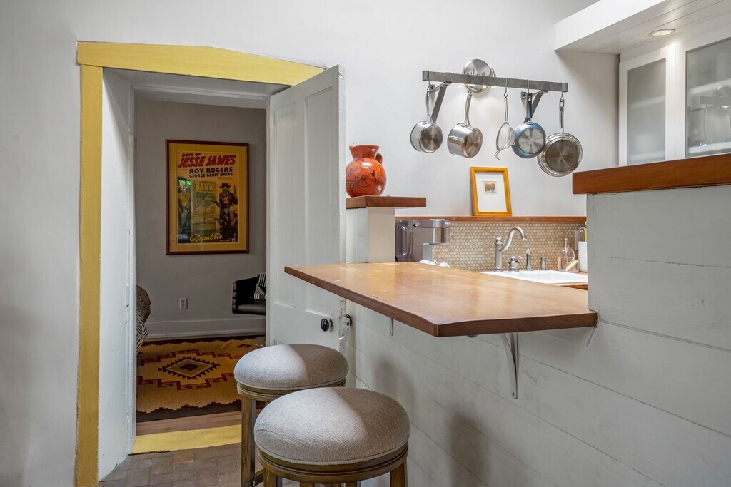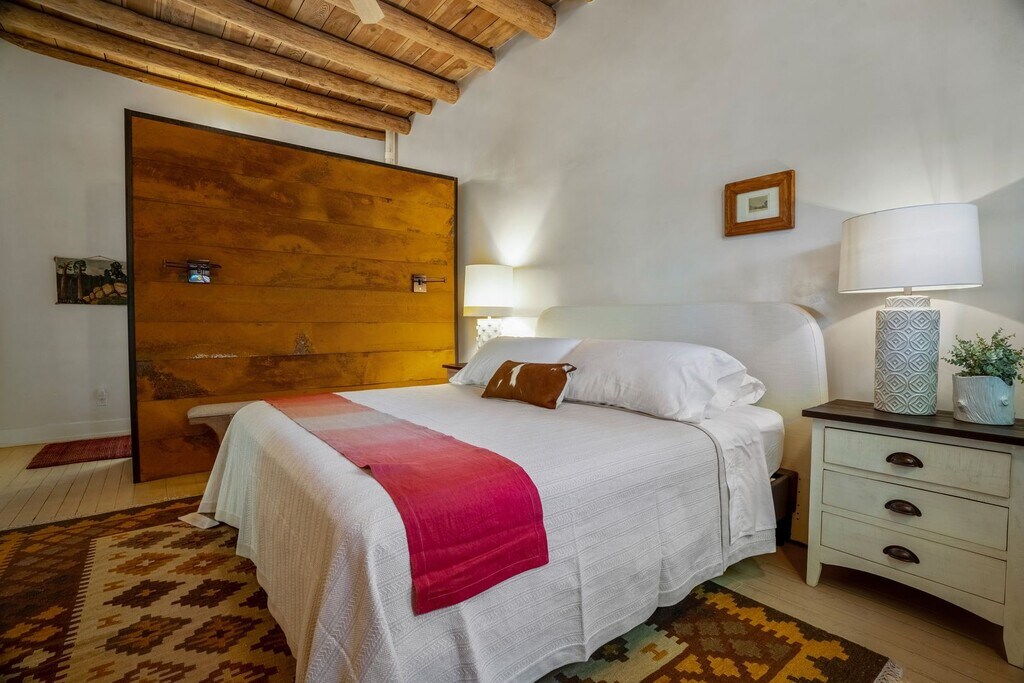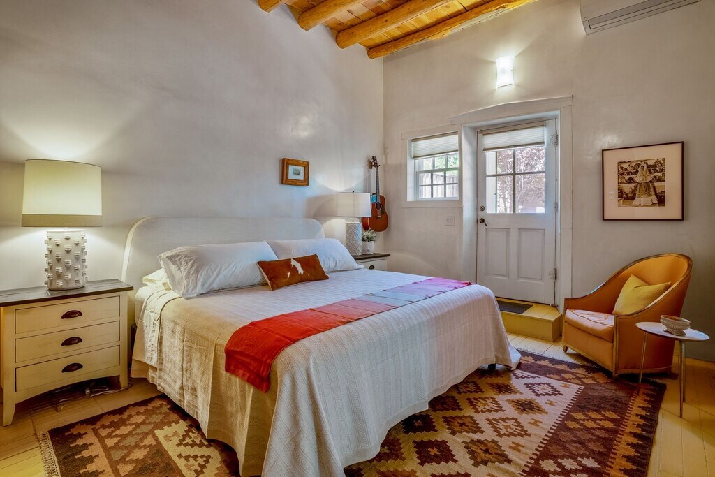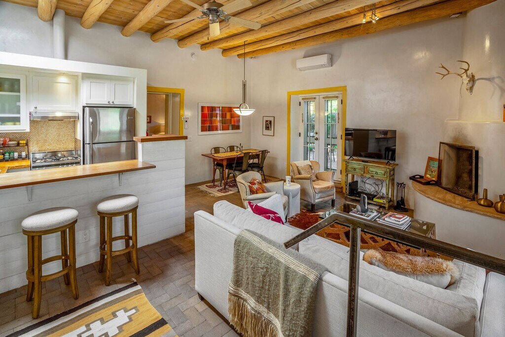 $3,200/month - 2 Bedroom | 1 Bathroom | 1,080 sq. ft. A charming pied-à-terre located just blocks from the Santa Fe Plaza, offering a perfect blend of historic character and modern comfort. Dating back to 1859, this cozy two-bedroom, one-bathroom home has a rich history, with rumors that it once housed revolutionaries. The property has been thoughtfully renovated, earning acclaim for its meticulous restoration. With high ceilings, diamond plaster walls, and abundant natural light, Frida’s Gallery offers a serene and welcoming space that embodies the spirit of Old Santa Fe. At approximately 1,080 square feet, the home’s design maximizes both space and comfort, with well-considered interiors that combine elegant furnishings and local art. Each room flows seamlessly into the next, creating a harmonious atmosphere that invites relaxation and reflection. The Kiva fireplace adds warmth and a touch of traditional Southwestern charm, while the well-appointed kitchen and living area offer modern conveniences to ensure a comfortable stay. The outdoor patio is a perfect spot for enjoying the temperate Santa Fe climate, whether you're dining alfresco or simply soaking in the peaceful surroundings. Off-street parking is available, adding an extra layer of convenience to your stay. Whether you're unwinding in the home or venturing out to explore the vibrant heart of Santa Fe, Frida's Gallery provides the ideal location. Situated just half a mile from the Plaza, you'll have easy access to dining, shopping, the Santa Fe Railyard, the Lensic Performing Arts Center, and much more. Offered Furnished! Kiva Fireplace Washer/Dryer in unit Minisplit Air Conditioning Off-street parking for one vehicle $3,200/month with Utilities Included for leases of 6 months or $2,600/month + Utilities for leases 9 months or greater Application Costs $35.00 Per Signatory First Month, Last Month, and Security Deposit Required Tenants Transfer All Relevant Utilities Into Their Name