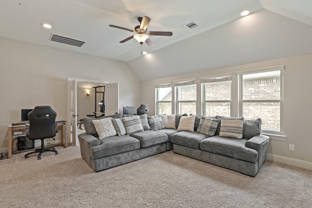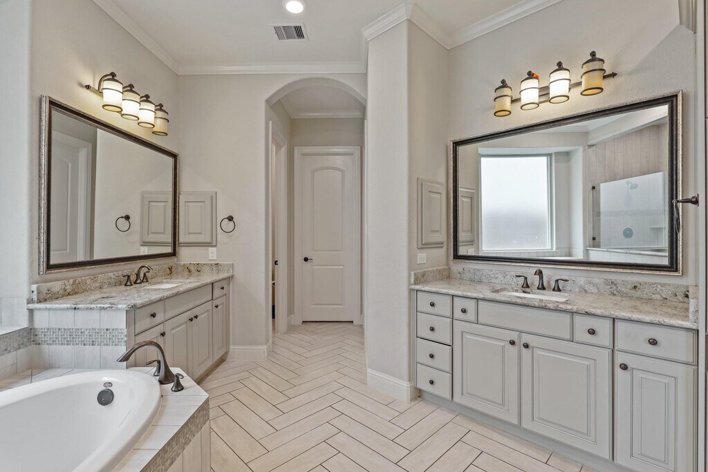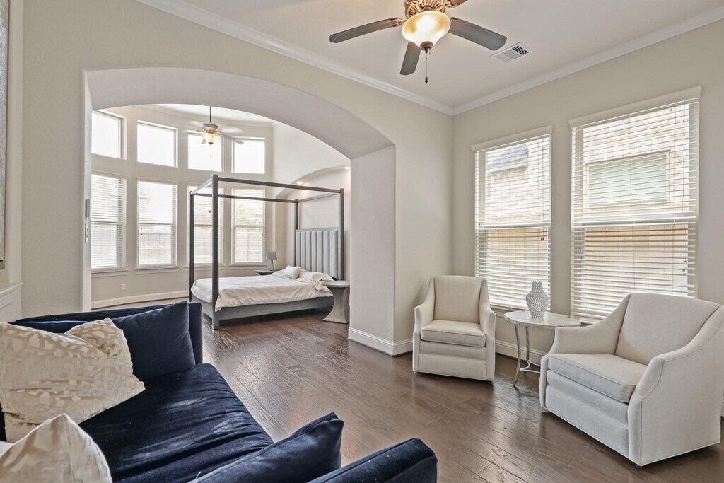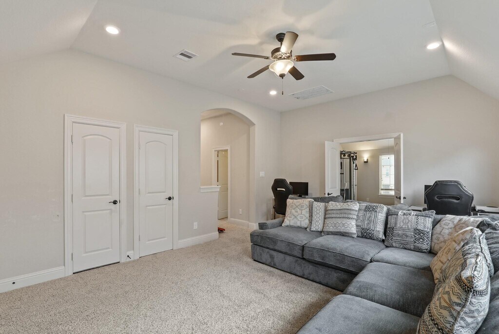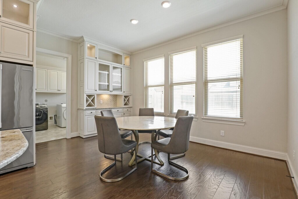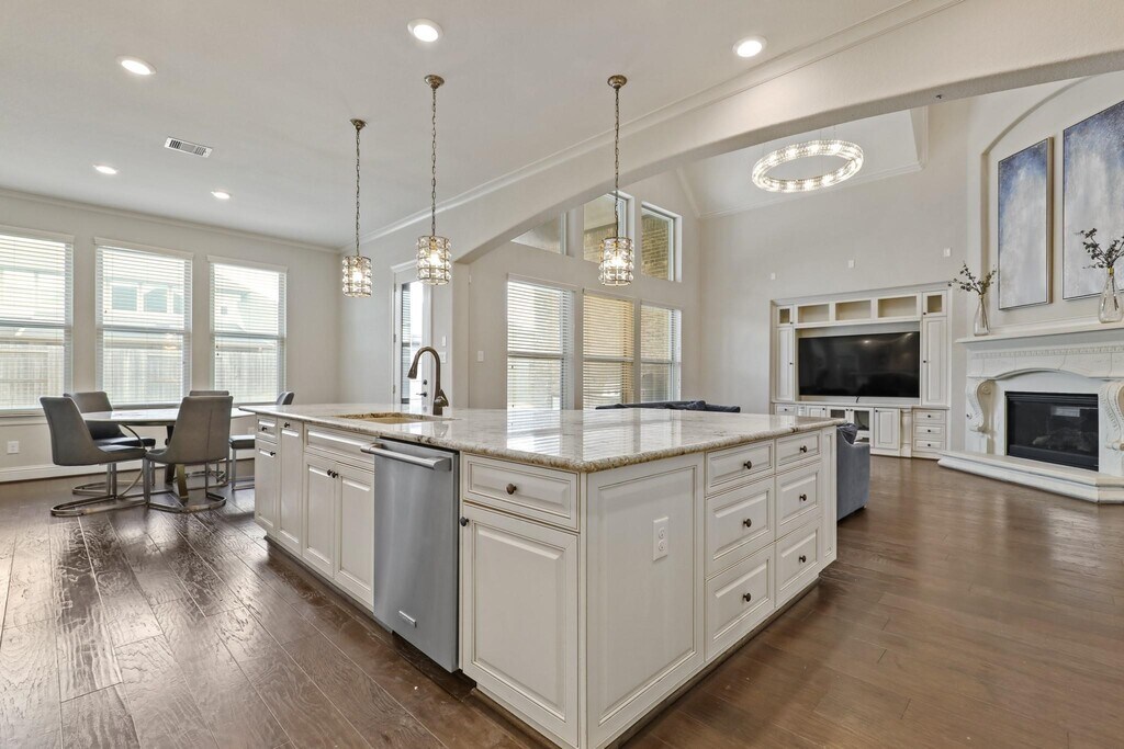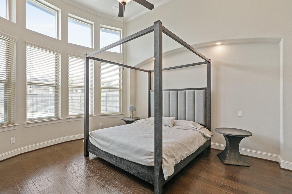 Welcome to the Reserve at Clear Lake. This stunning Kingston Series home by Village Builders boasts four bedrooms,three and a half bathrooms,and a three-car tandem garage. Inside,discover a versatile floor plan featuring an office,game room,media room,and exercise room. The home's focal point is a grand curved staircase leading to a gourmet kitchen complete with a piano island,maple cabinetry,and a butler's pantry. The open-concept kitchen overlooks the spacious family room with soaring ceilings. Elegant 5-inch hardwood floors grace the entryway,family room,dining area,kitchen,study,and primary suite. The primary bedroom includes a relaxing sitting area and a luxurious en-suite bathroom with dual closets and vanities. Step outside to enjoy the perfect outdoor oasis with a pool,hot tub,and a covered patio complete with an outdoor kitchen. MLS# 27606612