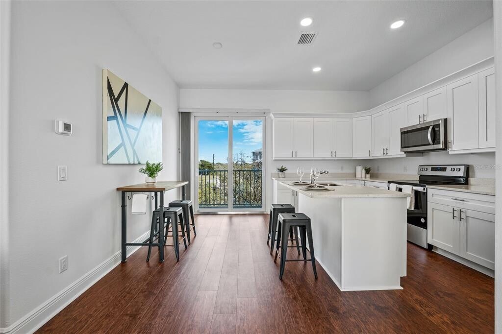 Welcome to the Florida Lifestyle Townhouse,now offered unfurnished and ready for immediate enjoyment. This stunning 3-bedroom,2.5-bath corner townhome delivers space,style,and an unbeatable location in a quiet yet vibrant coastal community. One of the standout features is the extra-large two-car garage,among the largest in the area,spanning the entire downstairs footprint and offering exceptional storage and functionality. As you enter the home,the garage is conveniently located to the left,with a welcoming foyer leading you upstairs. The main living level is filled with natural light and showcases luxury vinyl flooring throughout. The spacious living room flows seamlessly into the kitchen,which features granite countertops and stainless steel appliances,perfect for both everyday living and entertaining. Enjoy cozy evenings by the electric fireplace or step through sliding doors onto one of two balconies to take in the fresh Gulf air. A half bath and a dedicated laundry room complete this level. Upstairs,the primary suite is generously sized to comfortably accommodate a king-size bed and includes a private bath with a beautifully designed step-in shower,dual sinks,and ample counter space. Two additional guest bedrooms and a full guest bathroom with a tub and shower combination provide plenty of room for family or visitors. Come home to a peaceful,relaxing community while staying close to all the excitement of city living. Located in the highly desirable Gulf Harbors waterfront community,residents enjoy access to a community pool and tennis courts. There is also the option to join a private Gulf of Mexico beach club for just $200 per year,featuring a clubhouse,pool,and docks for boating and fishing. Conveniently located near downtown New Port Richey,you will enjoy fine dining,shopping,and entertainment just minutes away. Large dogs are welcome,and renters insurance is required. This is a fantastic opportunity to live in comfort,style,and true Florida coastal living. Call today to schedule your private showing. MLS# TB8452300