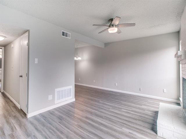 Recently updated 3 bedroom 2.5 bath fourplex end unit in Fort Worth, near Marine Creek Lake. Features primary bedroom on 1st floor. Living area has vinyl plank flooring with a brick fireplace. Kitchen features granite counter tops, stainless steel appliances and a separate utility room with space for a full size washer and dryer. Two bedrooms and full bath occupy the 2nd floor. No pets. Income needs to be 3X monthly rent.