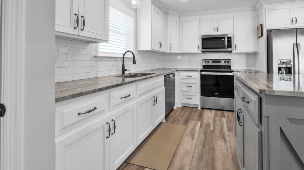 Welcome to 5731 Shasta Pines, a stunning residence located in the vibrant city of Valdosta, GA. This home boasts three spacious bedrooms and two full bathrooms, offering ample space for comfort and relaxation. The interior features luxurious granite countertops, stainless steel appliances, and a washer and dryer included for your convenience. The home is adorned with LVP flooring throughout, adding a touch of elegance and durability. The primary bedroom and living room are accentuated with vaulted ceilings, creating an open and airy atmosphere. Its prime location near Valdosta Regional Airport adds to the convenience, making travel a breeze. Experience the perfect blend of style, comfort, and convenience at 5731 Shasta Pines.