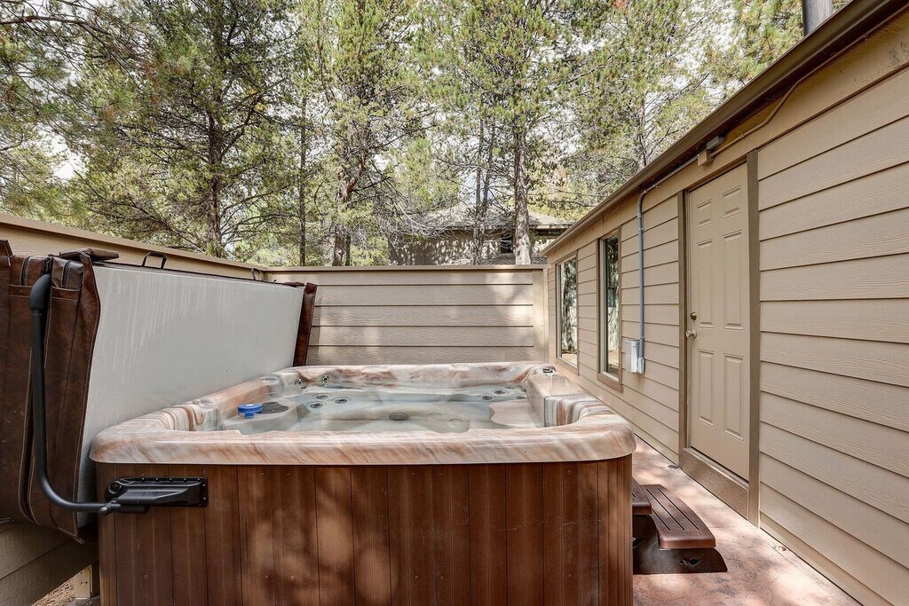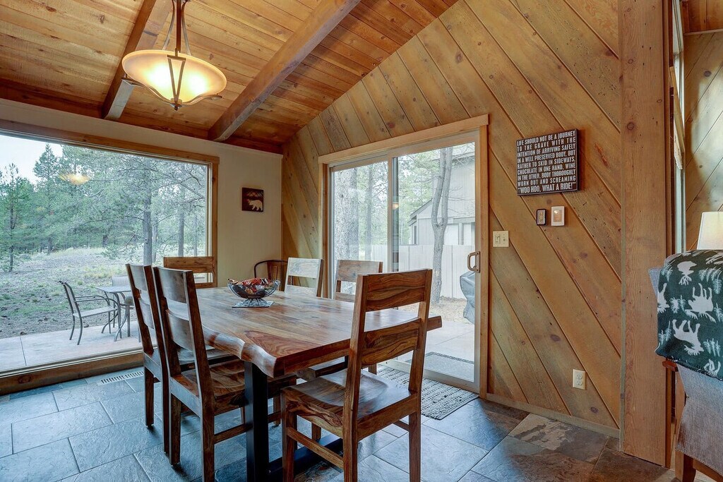 Feel at home in this beautifully updated single-level home in Sunriver, featuring 3 bedrooms and 2 bathrooms, and space for up to 8 guests. This lodge-inspired retreat features a fully remodeled kitchen with quartz countertops and stainless steel appliances, a cozy gas fireplace, and heated tile floors. Enjoy access to a private hot tub, a barbecue and electric smoker, and five adult bikes. Enjoy 8 SHARC passes. Furry friends are welcome with a fee. Ideally situated, this home offers easy access to SHARC, The Village at Sunriver, the Marina, and the Stables, providing quick access to shopping, dining, swimming, and more. It is the perfect launch point for exploring Central Oregon. No smoking is allowed on the property. Please remove shoes and follow all city and county guidelines. Please review burn notices. A rental agreement must be signed prior to arrival. [SI]