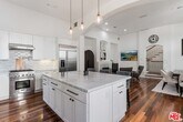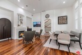 Beautiful Capri Court home with soaring ceilings, graceful archways, and timeless details throughout. Available furnished or unfurnished, this stunning home offers three bedrooms plus a large den (which can serve as a fourth bedroom) and four full bathrooms! Step inside to a generous living area with a cozy fireplace, seamlessly connecting to the kitchen and dining space. The reimagined kitchen features a gorgeous island, sleek quartz countertops, and high-end appliances, leading to a private yard for indoor-outdoor living. The first level also provides direct access to a private two-car garage and a full bathroom for ultimate convenience. Upstairs, a flexible den with an updated bath opens to a private patio through French doors, creating the perfect setup for entertaining guests or serving as a home office. Further up, the spacious primary suite features a Juliet balcony, ensuite bath with dual vanities, a soaking tub, a stand-up shower, and a walk-in closet. Two additional large bedrooms share a refreshed Jack-and-Jill bathroom. There's a laundry closet with stackable washer/dryer between the two bedrooms, making laundry a breeze. Ideally located just moments from CenterPointe Club and The Resort offering top-tier gym and pool facilities as well as Concert Park and Runway, home to Whole Foods, Cinemark, great dining, shops, and more! MLS# 26727437