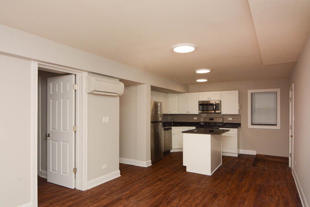We now offer virtual video tours of all of our apartments! Schedule a virtual tour and rent this apartment from the comfort and safety of your home! Apply online! Notable one bedroom, one bathroom in Edgewater classic courtyard building features rehabbed eat in kitchen with modern white cabinets, black quartz countertops, island with breakfast bar, stainless steel appliances, dishwasher, microwave, spacious living area, hardwood floors, rehabbed ceramic tile bathroom, spacious bedroom, ample closet space, in unit laundry, and cats are welcome. Short walk to the Red Line! Won't Last Long!