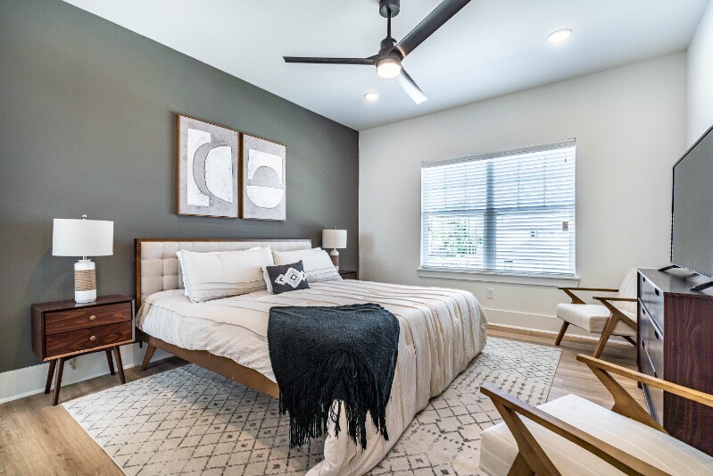Property Id: 1543858 Welcome to Paul Quinn Estates! Designed for privacy and tranquility, this quiet and stunning community is nestled in the popular Oak Forest & Tidwell area, just minutes away from Houston's vibrant restaurants and parks, with excellent access to major highways. Experience airy homes with large windows and abundant natural light, coupled with true privacy in with no neighbors across the street. Security and parking are effortless with an automatic community gate, spacious streets, private driveways, 2-car garages, These free-standing residences offer a beautiful 2-story layout with an open concept living, dining, and kitchen area on the first floor. The kitchen boasts gorgeous wood-tone soft-close cabinetry, designer backsplash, and stunning quartz island countertops. The second floor features spacious bedrooms and a laundry room with ample storage space. Refrigerator/Washer/Dryer is $100/Month. Water is $50/Month by HOA.