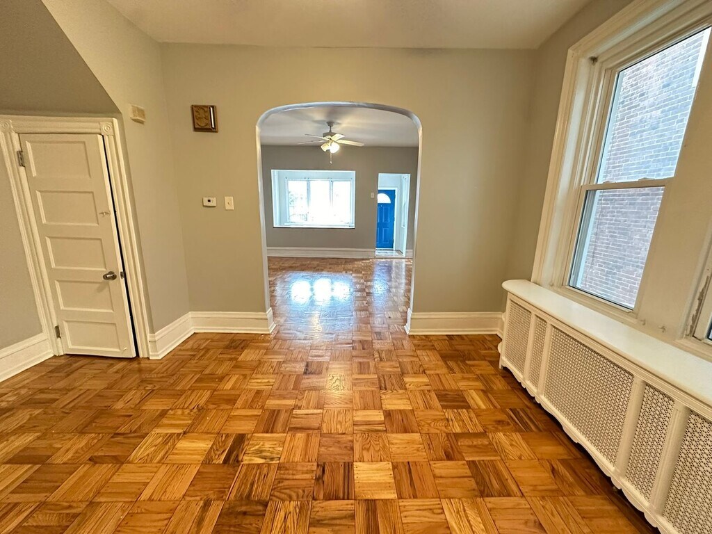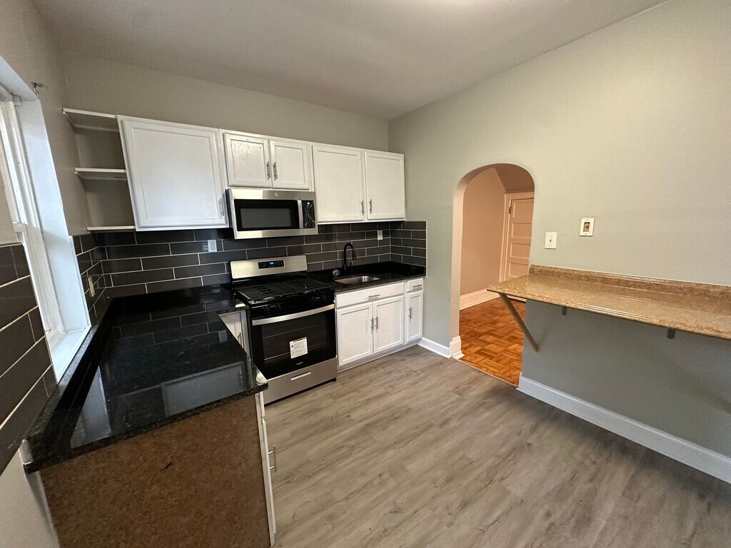 Three large size Bedrooms with ample closet space and plenty of natural light Fully renovated and luxurious Bathroom Beautiful refinished hardwood floors Granite Counter-tops and kitchen bar New appliances Spacious living areas Very quiet block with lots of homeowners Enclosed front porch AND backyard This House won't last long - we are taking applications now so hurry up!