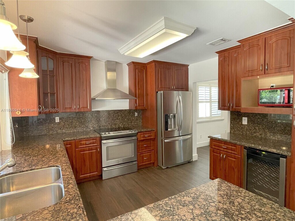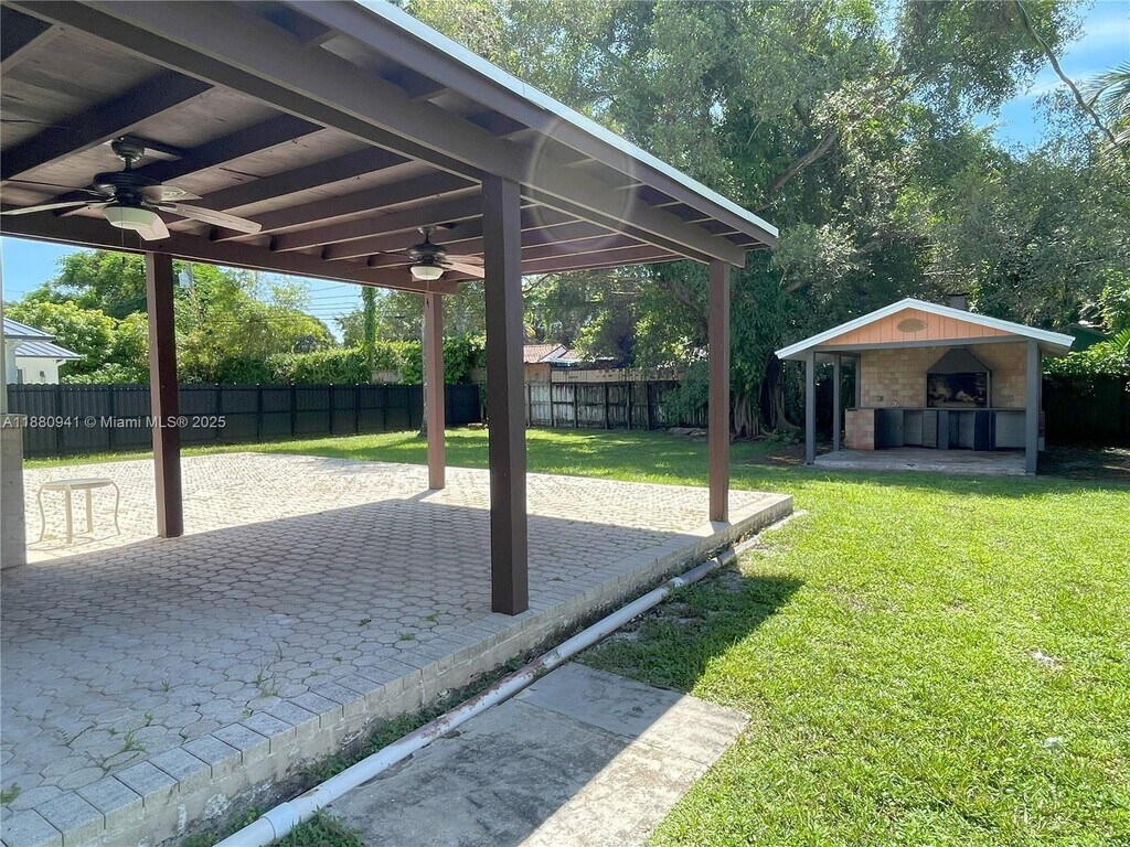 Property available for 2-3 month rental max, unfurnished. 3 bedroom 2 bathroom single family home with no HOA ideal for family in-between relocating to their new home. Master bedroom with 2 walk-in closets. Granite counter tops, wine cooler, and stainless steel appliances. Property sits on a quarter acre lot, on a cul-de-sac street. Large yard with separate covered wood burning BBQ area. Yard deck/terrace has a covered pergola with a passthrough window from kitchen. 2 car garage and space for 2 additional cars in driveway, so you may park up to 4 vehicles. Hurricane impact windows and protection.