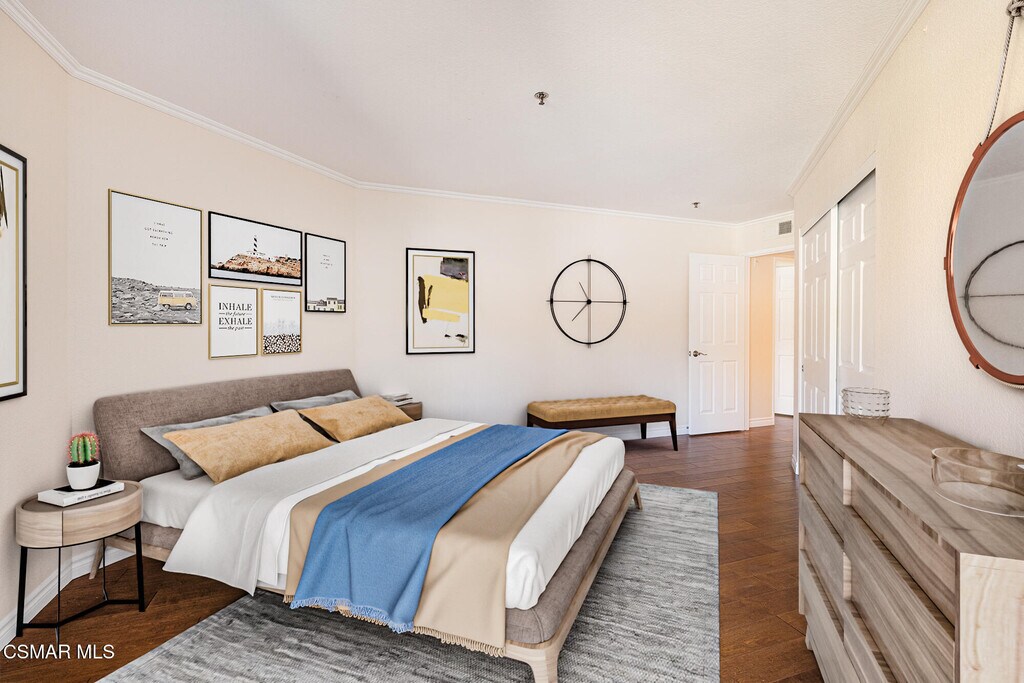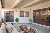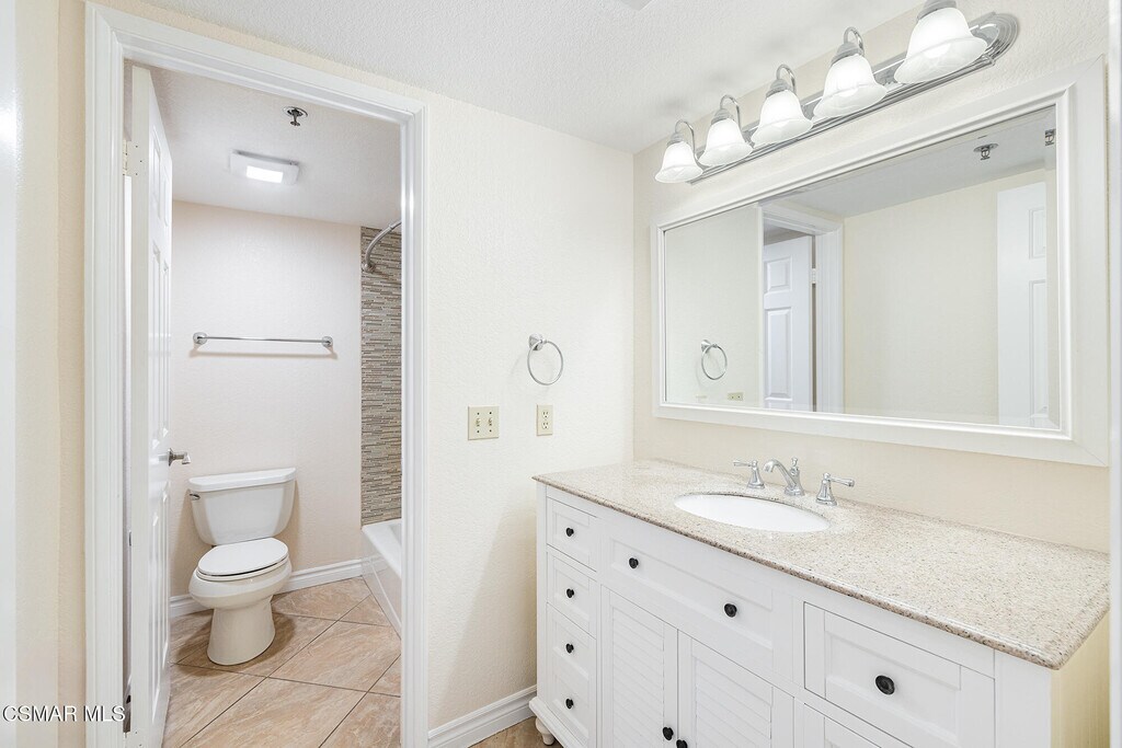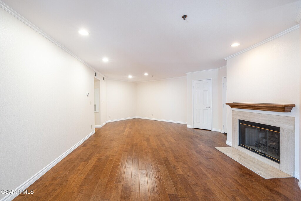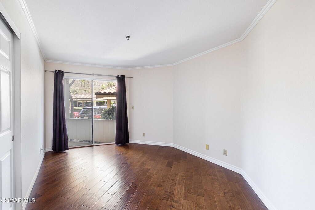 Nestled in the desirable Shadow Ridge community of Oak Park, this meticulously maintained ground-level home is located in the highly regarded Oak Park School District. Freshly painted and featuring warm, neutral tones throughout, this 2-bedroom, 2-bathroom unit boasts beautiful wood floors and an open-concept living and dining area, complete with a cozy fireplace and covered patio. The kitchen offers stainless steel appliances, granite countertops, and generous storage space. The spacious secondary bedroom features a sliding door that leads to a shared patio and just across the hall, you'll find a beautifully updated bathroom with a granite vanity and a tub/shower combo. The primary suite is a tranquil retreat, complete with a large walk-in closet and an updated en-suite bathroom featuring granite counters, a tub/shower combo, and a private patio. The unit also includes a laundry/utility room with space for a full-size washer and dryer. Shadow Ridge offers resort-style living, featuring two pools, tennis and racquetball courts, a volleyball court, gym, sauna, and clubhouse. HOA fees cover cable with HBO and Cinemax, high-speed internet, and fire and earthquake insurance. With its prime location, this home provides easy access to shopping, dining, top-rated schools, parks, and scenic hiking and biking trails.