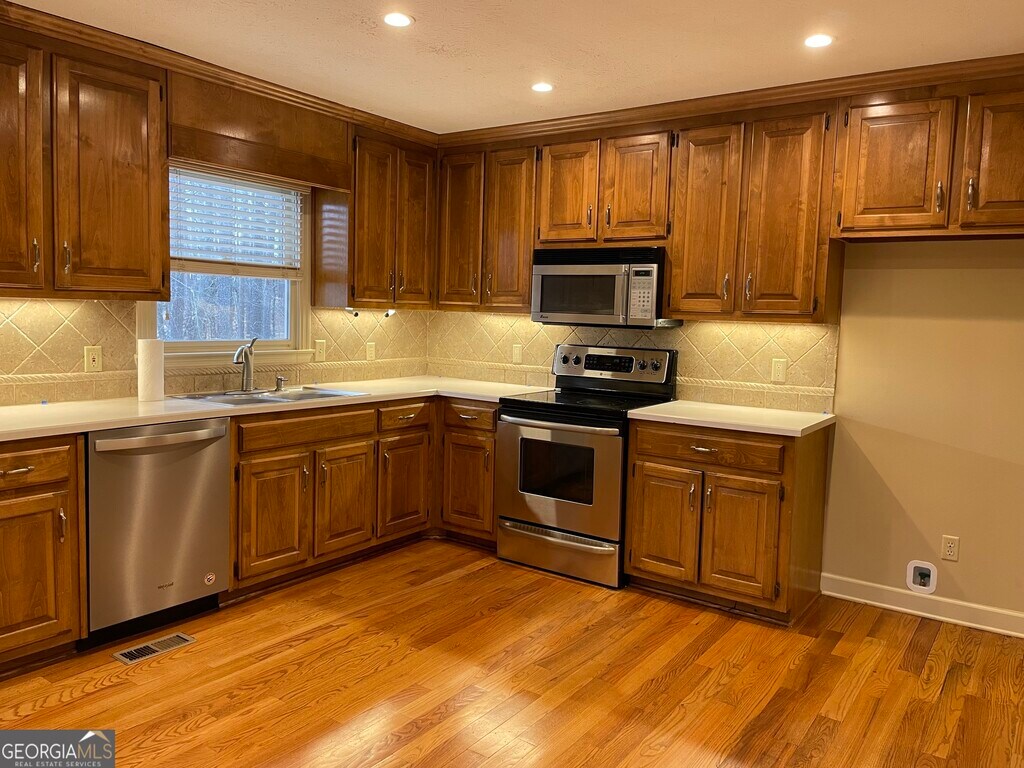 Spacious 5 bedroom/ 3 bath offers a lot of storage. Primary bedroom and private bath is on the main level with 2 additional bedrooms and a full guest bath. Upstairs offers 2 large bedrooms with walk in closets and a full bath. There is a full unfinished basement and additional storage above the garage. Kitchen is open to the dining and living room. Large wooded yard. The home is located within 1 mile of Coal Mountain ES, North Forsyth MS and North Forsyth HS. Additional parking area for RV or boat. Within 3 miles, WalMart, Starbucks, Aldi, Publix, Post Office, and restaurants. Small pets will be considered.