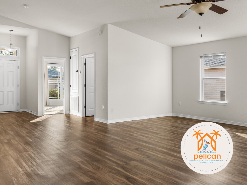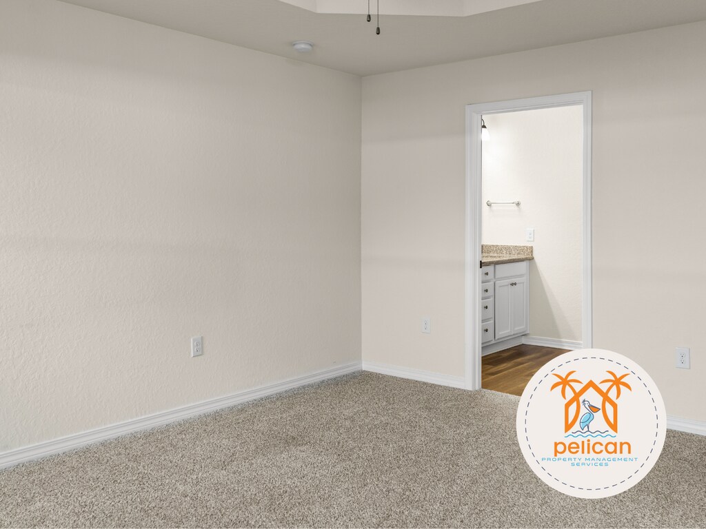Welcome home to this beautifully designed residence that perfectly blends modern style with everyday comfort. Featuring an open-concept floor plan, this spacious home seamlessly connects the living room, dining area, and kitchen—ideal for entertaining, family gatherings, and relaxed daily living. The modern kitchen boasts stainless steel appliances, granite countertops, white cabinetry, a large center island for casual dining or meal prep, and an oversized walk-in pantry for exceptional storage. The expansive great room offers a vaulted ceiling and large windows that flood the space with natural light, creating an airy and inviting atmosphere perfect for movie nights or holiday celebrations. This home offers a desirable split floor plan with a spacious primary suite featuring a tray ceiling and ceiling fan with light. The luxurious en-suite bathroom includes a garden tub, tiled shower, dual granite vanities with chrome fixtures, and a large walk-in closet. Two additional generously sized bedrooms provide ample natural light and closet space, while the stylish hall bathroom features granite countertops and chrome finishes. Enjoy outdoor living on the covered patio—perfect for barbecues or relaxing evenings under the stars. Additional highlights include a 2-car garage and a professionally landscaped front yard with low-maintenance plants and excellent curb appeal. Recent upgrades include luxury vinyl flooring throughout, **new carpet in the primary bedroom (5/2025)**, freshly painted exterior doors, and new door knobs and deadbolts. Located in a sought-after neighborhood with convenient access to schools, shopping, and major transportation routes. Residents also enjoy community amenities including a **playground, splash pad, nature trail, and covered picnic area**. Don’t miss the opportunity to rent this exceptional home—schedule a showing today!