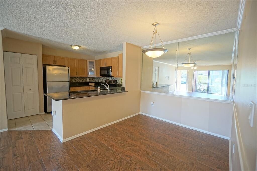 This spacious 2-bedroom,2-bathroom condo offers 1,044 square feet of comfortable living space in the gated,waterfront community of Gallery at Bayport. The open-concept floor plan features a bright living room with glass sliding doors leading to a screened-in lanai,perfect for enjoying peaceful water views and Florida breezes. The home includes ceramic tile and carpet flooring,ceiling fans,and window blinds throughout. The kitchen is well-appointed with wood cabinets,black granite countertops,a convenient breakfast bar,a pantry closet,and a full appliance package including stainless steel and black appliances: refrigerator,stove,dishwasher,and microwave. A laundry closet with washer and dryer hookups adds everyday convenience. The primary bedroom offers a walk-in closet and a private en-suite bathroom with a step-in shower,while the hall bathroom includes a tub/shower combination. Water,sewer,and trash are included in the rent. Residents enjoy resort-style amenities including a large community pool with expansive deck area,a community fitness center,and beautifully maintained grounds along the water. HOA approval is required and may take 710 business days. Per HOA guidelines,small dogs up to 40 lbs at maturity are permitted. HOA restrictions apply: No commercial vehicles,jet skis,boats,campers,trailers,or inoperable vehicles are allowed. Conveniently located near shopping,dining,grocery stores,parks,and major roadways,this condo offers comfort,lifestyle,and location all in one. All residents are enrolled in the Resident Benefits Package which is an additional $60/month,payable with rent and includes utility concierge service making utility connection a breeze during your move-in,renters insurance,HVAC air filter delivered monthly (for applicable properties),our best-in-class resident rewards program,online maintenance portal,online rent payment portal,one late-fee waiver and much more! If you decide to apply for one of our properties,there is an $99 per adult application fee that is non-refundable. Anyone aged 18 or above who will be residing at the property must apply. We will (1) check your credit report; (2) check for any past evictions; (3) verify your employment,if applicable; (4) personal income,assets,or assistance must be sufficient and verifiable; (5) verify your previous landlord references; and (6) perform criminal background screening; (7) be aware that some associations also have application fees. We encourage you not to apply if you have bad credit references or poor rental history. MLS# TB8467878