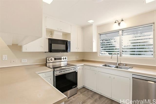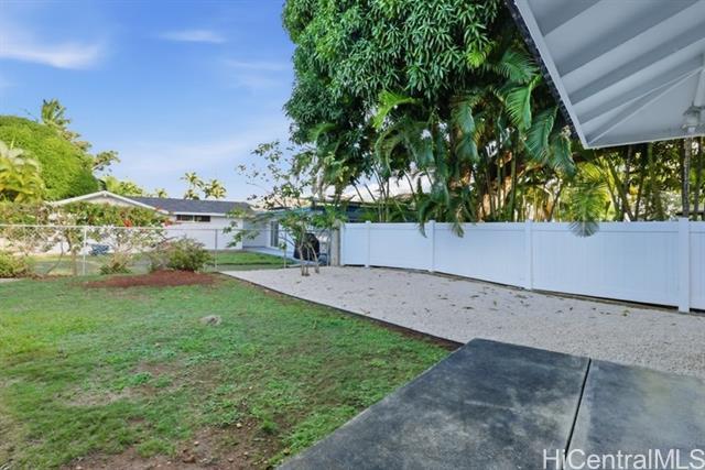 Newly upgraded 4 bedroom, 2 bath home with luxury vinyl plank flooring throughout, fresh paint and new kitchen appliances as well as window air conditioners in bedrooms. Located on a very desirable street with quiet cul-de-sac. Open and breezy floor plan including living room, family room and indoor patio. Separate laundry room. 2 car garage. Fenced in yard has a large shaded area and a screened in sitting room. Great location just blocks to Kailua beach! Yard service included. Available December 1. Text to schedule showing.