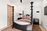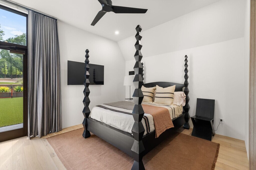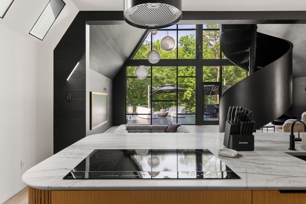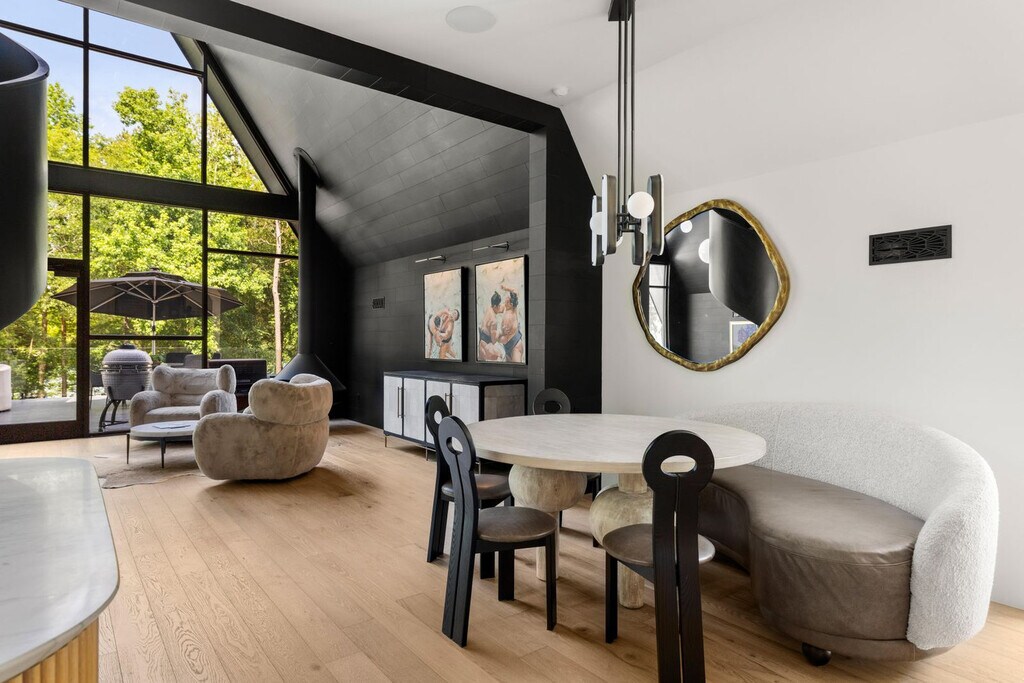 Featured in Dwell Magazine, feel at home in this stylish lakefront retreat that blends bold architecture with serene views of Lake Hartwell. This 5-bedroom, 4-bath home comfortably accommodates groups. Thoughtfully designed with a sunken conversation pit and curated interiors, this home offers open-concept living. Enjoy a spacious balcony with comfortable seating and a grill, perfect for relaxing or dining outdoors. The water around the dock stays deep year-round, making it great for swimming and boating. A pontoon boat is available for rent on site, and guests are responsible for fuel. Pets are considered for a fee, please inquire for more information. A car is recommended. Centrally located near downtown and the marina, this home offers direct lake access and peaceful wooded surroundings. Within 5 miles, you'll find great dining and activities, including The Boathouse Grill at Hartwell Marina, Southern Hart Brewing Company, and charming shops in downtown Hartwell. Outdoor options include Hartwell Lakeside Park for swimming and hiking, Big Oaks Park at Hartwell Dam for scenic views, and the Hart County Botanical Garden for a peaceful stroll. Before receiving check-in instructions, you must sign the rental agreement. Failure to do so will result in cancellation without a refund. The main level features one king-size bedroom and two queen bedrooms. Upstairs, there are four built-in twin beds. The basement offers its own private suite with a king-size bedroom, full kitchen, and living room. [SI]