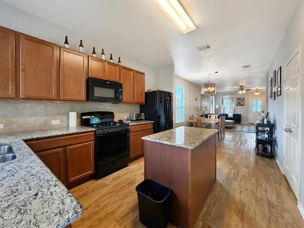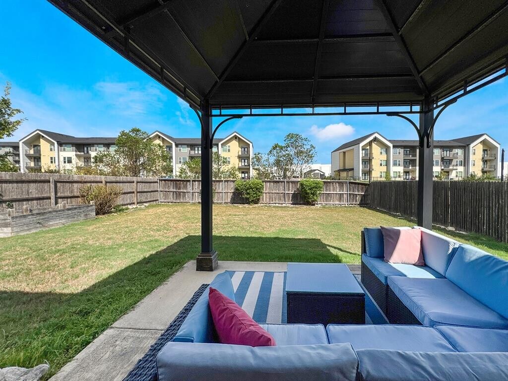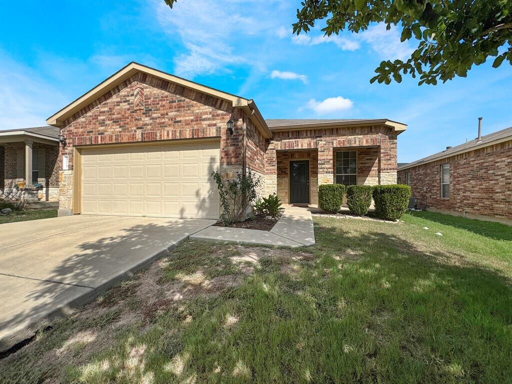 Discover an inviting home awaiting you at 575 Moonwalker Trl. in Buda. The kitchen presents stone countertops and shaker cabinets, perfectly complemented by a backsplash, while a large kitchen island anchors the space, providing ample room for preparation and gathering. Within the bathroom, a double vanity offers a touch of everyday convenience, providing dedicated space for morning routines and ensuring a harmonious start to each day. The home includes an outdoor living space and a patio, both framed by a fenced backyard, offering a private retreat for relaxation or entertaining. This single-family residence features an open floor plan that enhances the sense of space, laundry room, a walk-in closet, and a two-car garage.