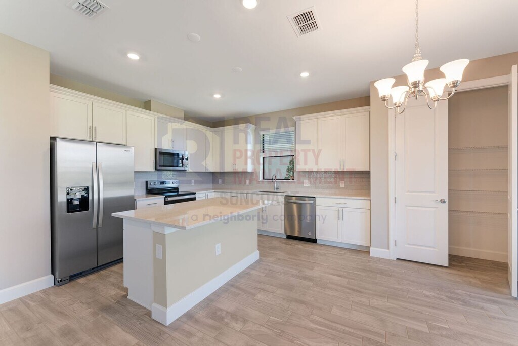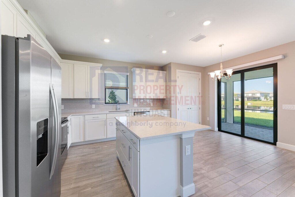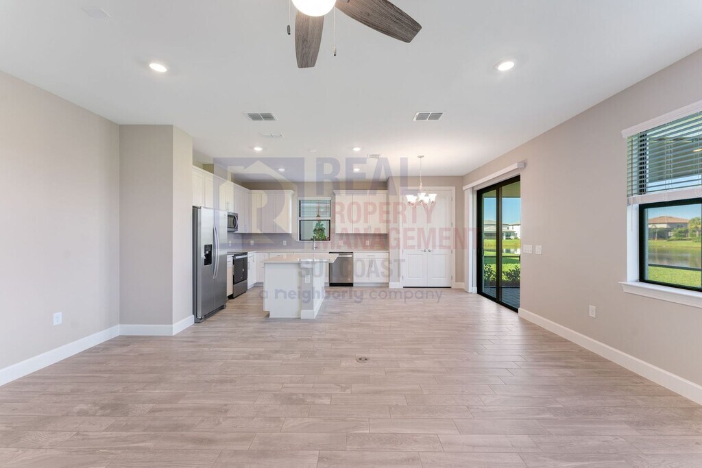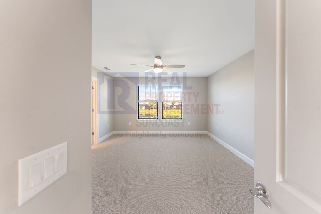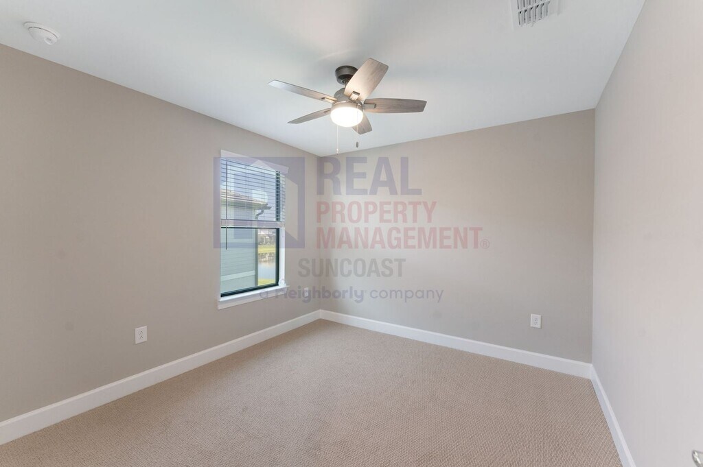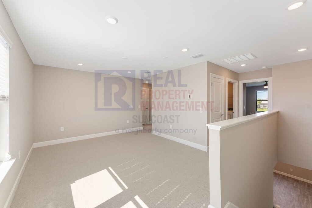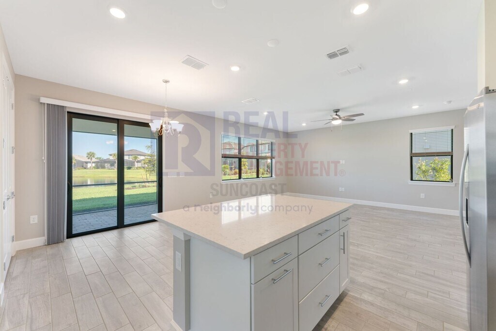 Welcome home to a beautiful property, recently built in 2024! Located in Sapphire Point, a gated community in the heart of Lakewood Ranch, and situated on a small lake, you’ll take in water views from the kitchen, family room, and master bedroom. There is beautiful wood look tile flooring throughout the downstairs and in each bathroom, and carpet in each bedroom and on the stairs. The kitchen has a spacious and open layout with a large center island and Whirlpool appliances. There are a total of 4 bedrooms and 3 full bathrooms. In addition, there is a loft upstairs! Each bedroom is equipped with a ceiling fan that includes a light. The master bathroom has two sinks, a large walk-in closet, and a spa like shower with a bench to sit. The laundry room upstairs features a Whirlpool washer and dryer. The home is pre-wired for cable and high-speed internet in each bedroom and the family room. The garage has a wash sink and a charging port/outlet for an electric vehicle. The gated neighborhood of Sapphire Point has a wonderful Community Center with an exercise/weight fitness room, large family style room with kitchen and two big screen televisions as well as tables/chairs/sofas to hold gatherings, and a swimming pool with barbeque grills and a firepit. In addition, the Community Center features a playground, full-length basketball court, and a dog park. The neighborhood is located across the street from the Lakewood National Golf Course and Country Club, and around the corner from the Lakewood Ranch Library, the Premier Sports Complex, and U.S. Post Office. You’ll feel right at home here with the ultimate Florida lifestyle! ~This home is professionally managed by Real Property Management Suncoast! ~Application fee is $50 per applicant over 18 ~No Pets Allowed ~Renters insurance is required ~One Months rent and deposit (Equal to 1 months rent) due upon lease signing
