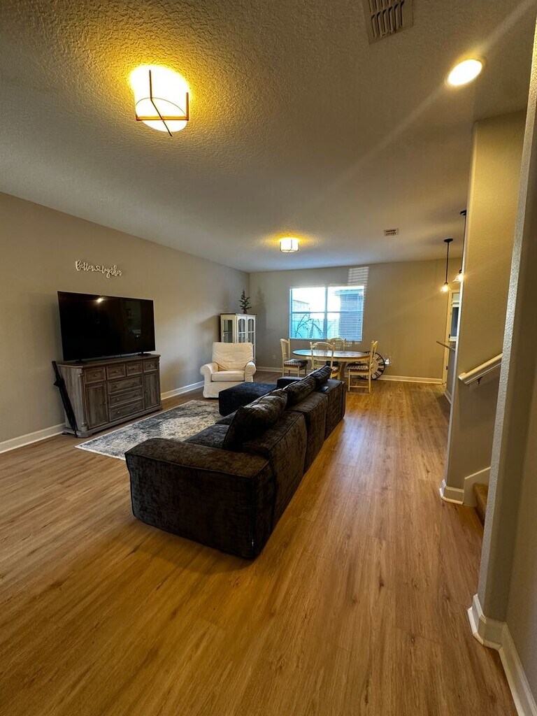 Available Now! Rare opportunity to lease a 4-bedroom, 2.5-bath townhome offering over 2,000 square feet of living space in the highly desirable Signature Lakes at Independence community in Horizon West. This well-maintained home features an open-concept floor plan ideal for modern living and entertaining. The gourmet kitchen is equipped with granite countertops, stainless steel appliances, and ample cabinetry. The primary bedroom is conveniently located on the first floor, with three additional bedrooms upstairs and a cute loft. A powder room on the main level is perfect for guests, and a dedicated laundry room includes washer and dryer. Recent updates include a new A/C (2022), new exterior paint by the HOA (2023), new refrigerator (2023), and new dryer (2023) Brand New Water Heater (Sept. 2025) new interior paint (Nov. 2025) Brand New Luxury Vinyl flooring downstairs (Nov. 2025), . Enjoy outdoor living on the spacious paved and fenced lanai, front yard is fully maintained by the HOA. Additional features include a 2-car garage, paver driveway, and gutters. Cable and Internet included in rent as well as access to Signature Lakes resort-style amenities: • Two swimming pools and a hot tub • Two fitness centers • Playgrounds • Walking and biking trails • Boat ramp for boating and water skiing on Lake Hancock • Year-round community events Conveniently located near top-rated schools, shopping, dining, and major roadways. Available for immediate Occupancy