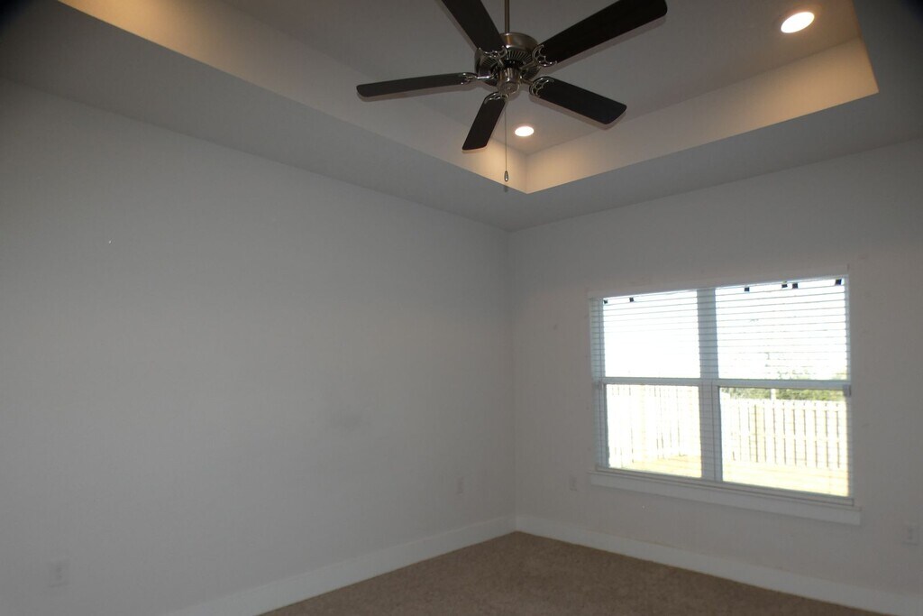 View In 3D: Located in the desirable Arbor Place community off West Spencer Field Road, this home offers 4 bedrooms, 2 bathrooms, a 2-car garage, and 1,835 square feet of comfortable living space. Inside, you’ll find a spacious open-concept layout with luxury vinyl plank flooring throughout the main living areas and cozy carpet in the bedrooms. The living room boasts a beautiful double tray ceiling with fan and flows seamlessly into the modern kitchen. The kitchen features a spacious pantry, ample white cabinetry, granite countertops, a center island with a dual basin undermount sink and bar seating, an eat-in dining area, and stainless steel appliances including a double door refrigerator with bottom drawer freezer, a flat-top range, built-in microwave, and a dishwasher. The primary suite is generously sized and includes a tray ceiling, ceiling fan, and an ensuite bathroom with dual granite vanities, a garden tub, separate standing shower, and a well-sized walk-in closet. Three additional bedrooms share a second full bathroom with a single granite vanity and a tub/shower combo. Additional highlights include a dedicated laundry room with space for a full size washer and dryer, a covered back patio, a fully-fenced backyard, and access to the community pool.