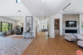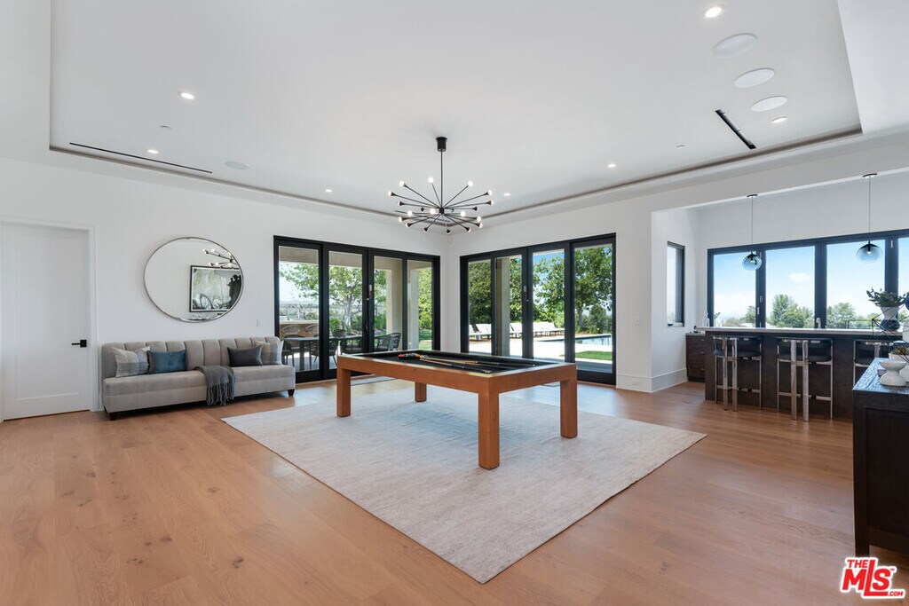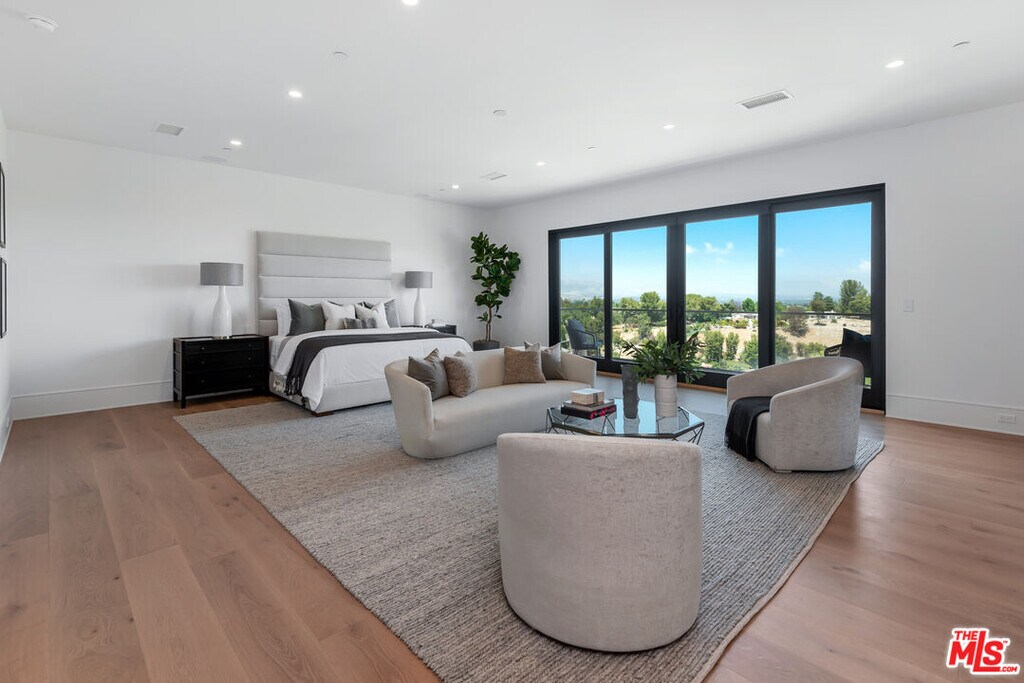 Privately located at the end of a cul-de-sac in the prestigious guard gated community of Hidden Hills sits this impressive 10,401 square foot estate on over an acre of land. Drive through the gates and up a long private driveway to the motor court and 4-car garage. The home provides explosive views from every room in the house of the city below. Enjoy the peace and tranquility of the lush backyard with a covered patio with heaters, outdoor kitchen, firepit, spa, infinity edge pool, meditation deck and sports court. Natural light saturates the home through the various windows and sliding glass doors that seamlessly marry the indoors with the outdoors for that ultimate in California lifestyle. Enjoy movie night in the home theater or entertain in your game room. Display your fine wines from the glass-enclosed temperature-controlled wine closet. The chef's kitchen has a walk-in pantry, dual islands and plenty of cabinetry. All 5 guest bedrooms are en-suite with walk-in closets. The primary is truly a retreat with high ceilings and sliding glass doors that lead to a private balcony that overlooks the city light views. The primary bathroom has a soaking tub, two wash closets, dual vanities, and an oversized shower. The dual primary walk-in closets have been built out with custom shelving and drawers. The other amenities of the home include smart home technology with surround sound, wide-plank hardwood floors and gorgeous chandeliers and impeccable furniture. MLS# 26638833
