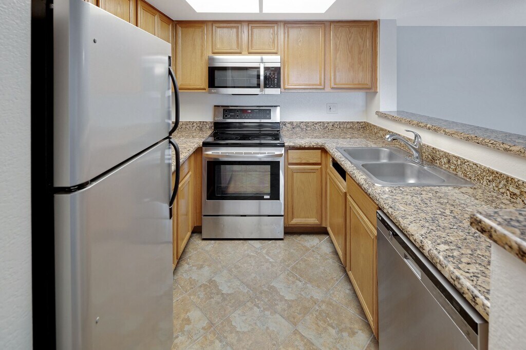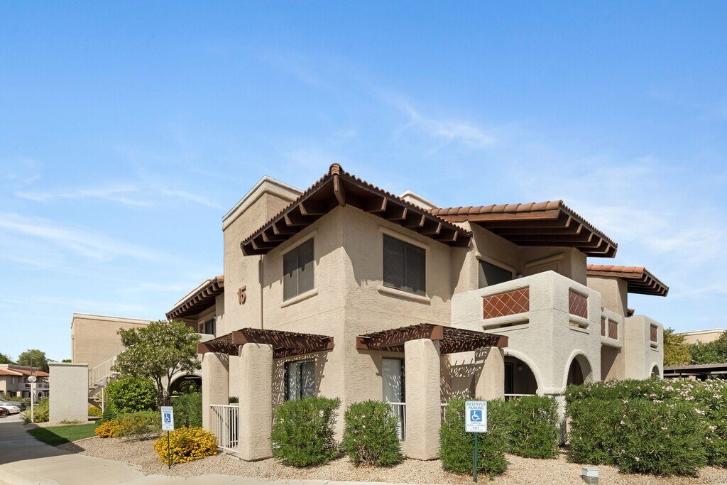 Wonderful 2 bed/2 bath split floor-plan condo with new interior paint. Plush carpet throughout the home. Great kitchen with stainless steel appliances including refrigerator, microwave, over, and dishwasher. Beautiful granite slab countertops and washer/dryer in home. Includes: Common Area Maintenance of tennis courts, pools, media room, workout room, recreation room, and pest control. Water & sewer included! 2 parking spaces Included, one cover and uncovered. Storage room available! Conveniently located next to Banner Thunderbird Medical Center and bike/hiking trail by the canal. Come check it out!