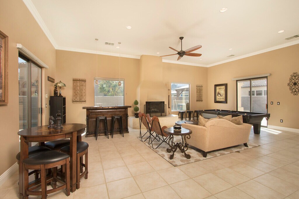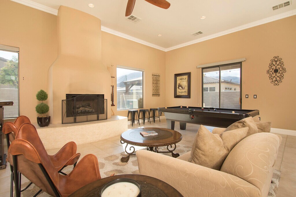 Great opportunity to lease this turnkey home and start soaking up the sun! Beautifully upgraded large home in the small gated community of Santa Rosa Trail. Experience the elegance of desert living with Coral Mountain views,luxurious amenities and a lifestyle that blends relaxation and excitement. This home features 4 furnished bedrooms with ensuite baths and abundant closet space. A detached casita with delight family and guests while offering privacy. Gourmet kitchen features large granite island,stainless steel appliances and pantry. Step inside to find a thoughtfully designed floor plan offering spacious great room,high ceilings and grand fireplace with large windows to the gorgeous views outdoors. Luxurious master suite offers a fireplace,walk in closets,dual vanities,soaking tub and walk-in shower. Enjoy the private courtyard featuring the pool and spa. Three car garage. Minutes away from premium golf including PGA West,Polo Grounds and many biking and hiking trails. Charming Old Town LaQuinta is just 10 minutes away. Come experience the unique desert lifestyle for and unforgettable living experience.