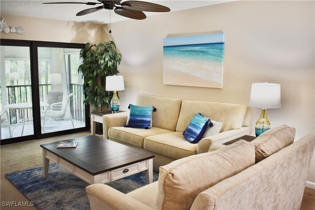 Welcome to your Tranquil and Peaceful Neighborhood Vacation. Mature Trees and Golf Course Views from your Screened Second Floor Lanai. 2 Bedroom,2 Bathroom Third Floor Condo with Common Elevator. Queen Bed in the Main Bedroom and 2 Twin Beds in the Guest Bedroom. Guest Bedroom and Bathroom have Hallway Door that can be Closed to give your Guests Full Privacy. Fully Stocked Kitchen with Stainless Steel Appliances. Comfortable Living and Dining Room Spaces for your Comfort. Assigned Carport to Help Keep your Car Cool from the Florida Sun. Also,plenty of Guest Parking also available. Deauville Lake Club offers 2 Pools,Tennis Courts,Shuffleboard,Clubhouse,Library and Spa all for your Enjoyment. Various Activities but only if you wish to Participate. Stay All Season!