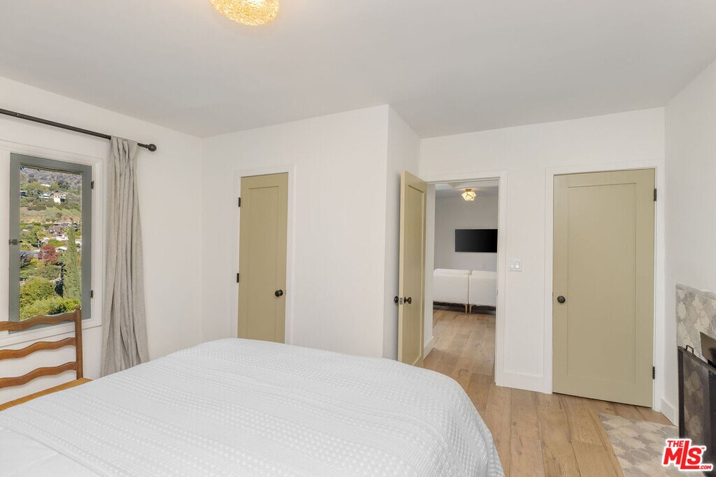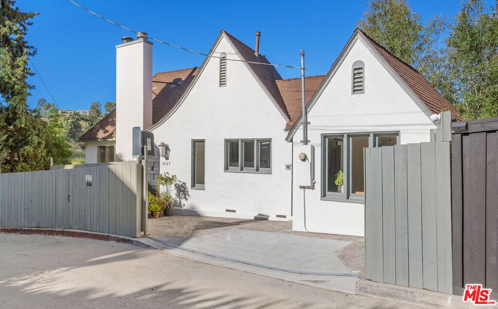 Tucked behind a gated drive, this Hollywood Hills haven welcomes you with sweeping vistas out of nearly every window. Enter the home past a tranquil water feature into a light-filled living room, complimented by vaulted ceilings and three sets of French doors, creating beautiful indoor-outdoor flow. Off the main living space sits an open-concept dining area and adjacent contemporary kitchen, complete with painted green cabinetry. Beyond the kitchen, on the main level, is a versatile guest suite - ideal as an office or creative studio - with its own en suite bath. As you descend to the lower level, a secondary living room makes the perfect space for lounging. Find two spacious bedrooms on either side of that flexible living area, each with its own bathroom. Outside, a spiral staircase leads to an elevated patio and fire pit - an intimate perch for evening gatherings set against the backdrop of the surrounding hills. Multiple terraces and sitting areas are enveloped by mature landscaping, creating an unparalleled sense of serenity. Enjoy the rare blend of character and modern comfort presented by this 1924 home, with its iconic views and effortless connection to the best of the Hollywood Hills, including the amenities of Franklin Village and the nature of Griffith Park, all just minutes away. Available for lease beginning January 10th, 2026. MLS# 25627089