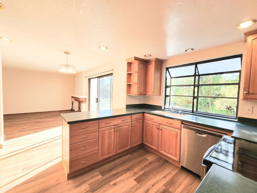 This spacious home is almost 2000 square feet with 4 bedrooms all upstairs and 2.5 bathrooms (1/2 bathroom on main level, other bathrooms are upstairs). All wood laminate flooring on lower level and carpet upstairs. Working gas fireplace in family room area. Large kitchen with full appliances and dining room space off of the kitchen. Backyard amazing, with lots of space for outside entertaining and fun. 1 small dog under 30lbs or 1 cat is allowed, no smoking, 1 year lease.