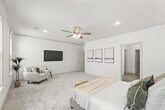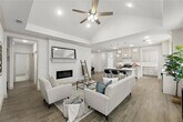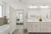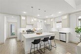 Step into this stunning one-story home, where modern elegance meets everyday comfort. The open-concept design creates a bright, airy feel, enhanced by soaring vaulted ceilings and lots of windows for abundant natural light. A sunlit gathering room with a cozy gas fireplace offers the perfect space for relaxation and entertaining. The chef’s kitchen is a dream, featuring sleek quartz countertops, custom cabinetry, stainless steel appliances, and a spacious island ideal for meal prep or casual dining. The seamless flow into the dining and living areas makes hosting effortless. The luxurious primary suite is a true retreat, boasting dual vanities, a walk-in shower, separate tub and a generous walk-in closet. A split floor plan provides privacy, with spacious additional bedrooms perfect for family or guests. Step outside to an oversized covered patio, ideal for outdoor gatherings or quiet evenings. Luxury vinyl plank flooring, elegant light fixtures, and designer tile backsplash add sophisticated style throughout. Available April 10.
