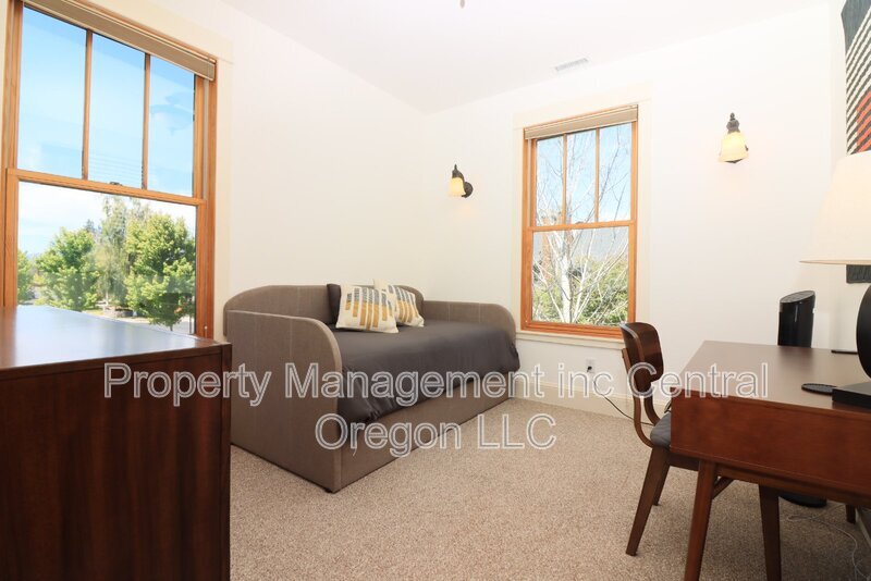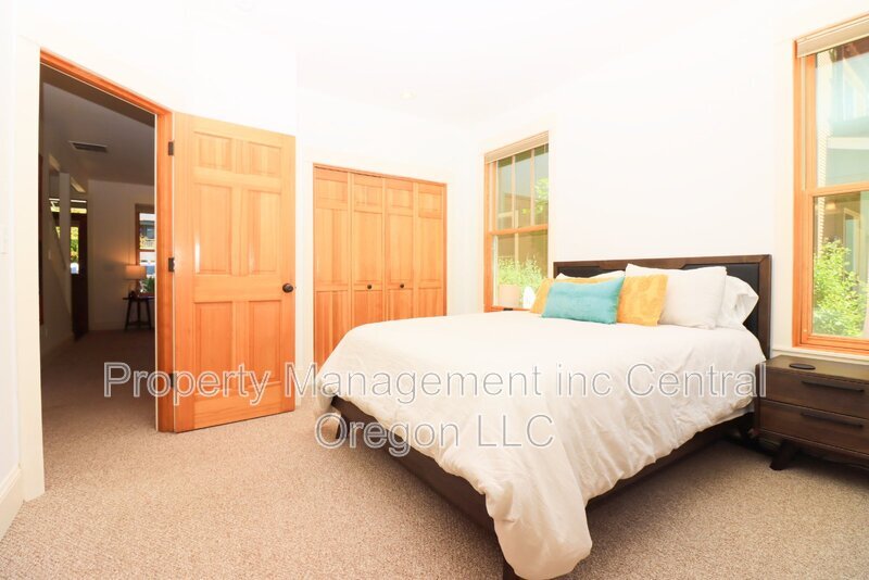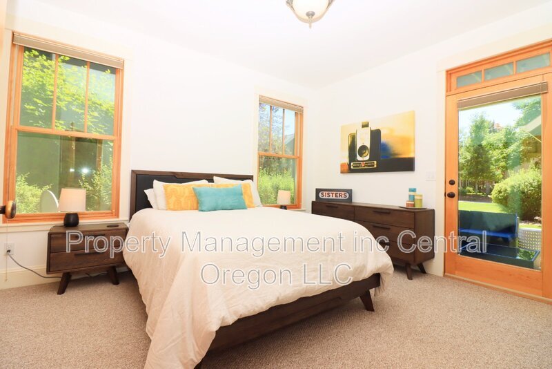 This fully furnished home in Sisters offers Cascade Mountain views from the upper balcony and upstairs family room and all of the upside of condominium ownership with the added benefit of no shared walls with neighbors. Interior features: A living room and family room with high vaulted ceilings; Downstairs bedroom with attached bathroom; Upstairs bedroom with attached bathroom; New furnace, heat pump, washer and dryer in 2020; large wood framed windows. Exterior features: Oversized 2 car garage with lots of attic storage; Covered front paver patio; all landscaping maintained by HOA; across from the pool & clubhouse. Pine Meadow Village neighborhood features: beautiful waterway, paved paths throughout, green common areas; pool and jacuzzi; tennis courts; short walk into downtown Sisters or to the renowned Peterson Ridge Trail. Tenant pays additional utility flat per month which includes WIFI. For applications go to
