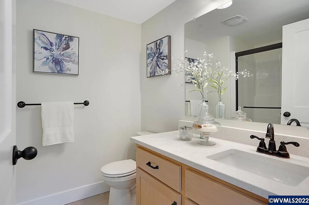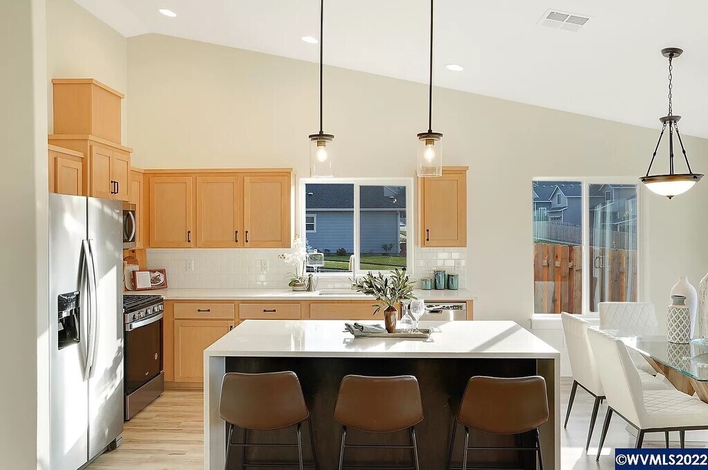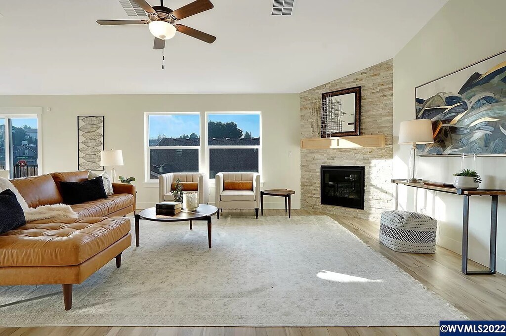 Your dream home awaits! Nestled at the top of Springwood Estates and conveniently located in South Salem, this huge daylight basement home does not disappoint. Enjoy your morning coffee on the covered upstairs deck in the morning, and relax with a beverage on the large, extended covered patio down below in the evening. 5 bedrooms, 3 full bathrooms, an office, and a downstairs entertainment space complete with a bar area await. Pleaae note that vinyl flooring has been added since the photos were taken in the downstairs basement and bedrooms. This home is located in a quiet neighborhood on a cul-de-sac located at the end of the street so there's no through traffic! Enjoy air conditioning, outdoor privacy screens on the back patio, vinyl flooring throughout, granite countertops throughout, a gas fireplace, dog door and dog area off of the extended balcony, irrigation installed in the front and backyards, a large primary suite with a walk-in closet, tons of natural light and more in this home. Don't miss out! Built in 2021 and like new. Tenant is responsible for the cost of landscaping which is $210. A professional landscaper has been chosen and hired by the landlord. Tenant is responsible for the cost of all utilities. Homeowner to contribute $100 toward water bill as tenant will be required to keep irrigation of all yards on and yards green throughout the spring and summers. One dog up to 40 pounds is allowed. 12 month lease. Washer/dryer hookups.