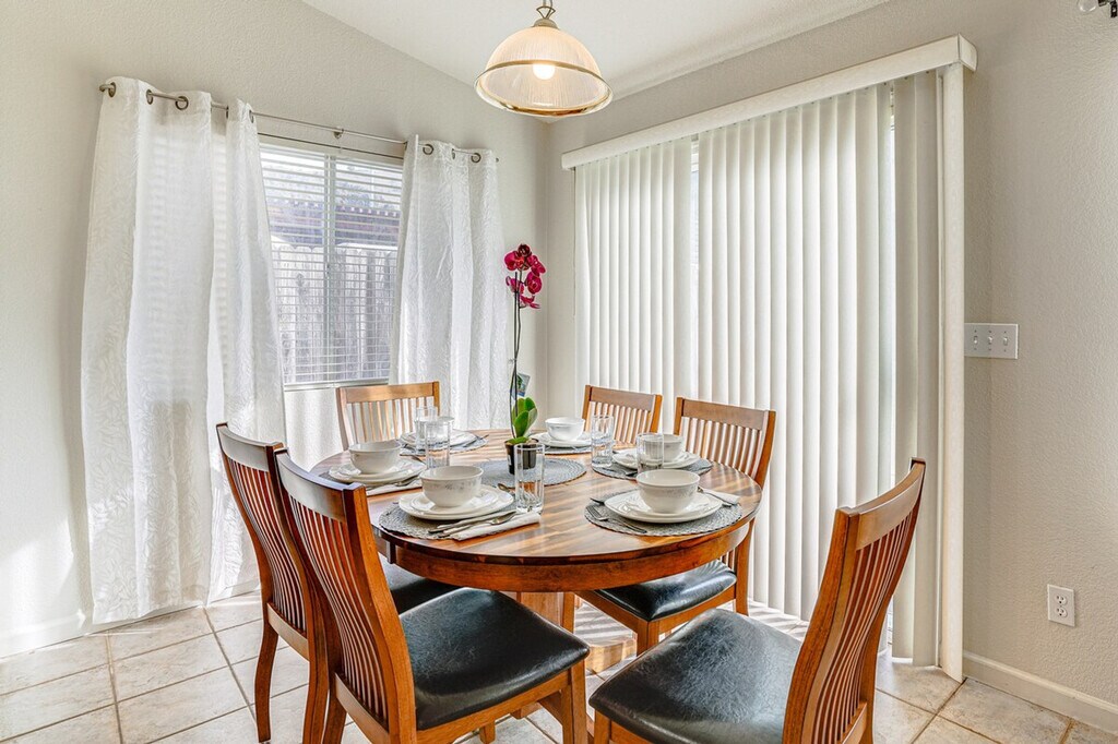 Experience the charm of Vallejo with this peaceful 4-bedroom, 2-bathroom house, perfectly situated for day trips to San Francisco and Napa Valley. This single-story home offers easy access with just two steps required for entry and features a fenced backyard, ideal for relaxation after exploring nearby wineries or enjoying fresh sourdough at Fisherman's Wharf. Feel at home in this thoughtfully designed space featuring a flat-screen TV and a group-friendly dining table. The kitchen is fully equipped with a refrigerator, stove, oven, dishwasher, drip coffee maker, toaster oven, microwave, and all the cooking basics, dishware, and flatware you need for a comfortable stay. Parking is available with space for two vehicles in the driveway and free street parking. Nestled in Vallejo, this home is conveniently located close to dining options and offers easy access to nearby beaches. Whether you're drawn to the allure of Napa Valley or the unique attractions of San Francisco, this location serves as an ideal home base for your adventures. This property maintains a strict no-smoking, no-pets, and no-parties policy. Guests must be at least 25 years old to book. Check-in is facilitated through a lockbox, and additional fees and taxes may apply. The fireplace is decorative and not available for guest use. [SI]