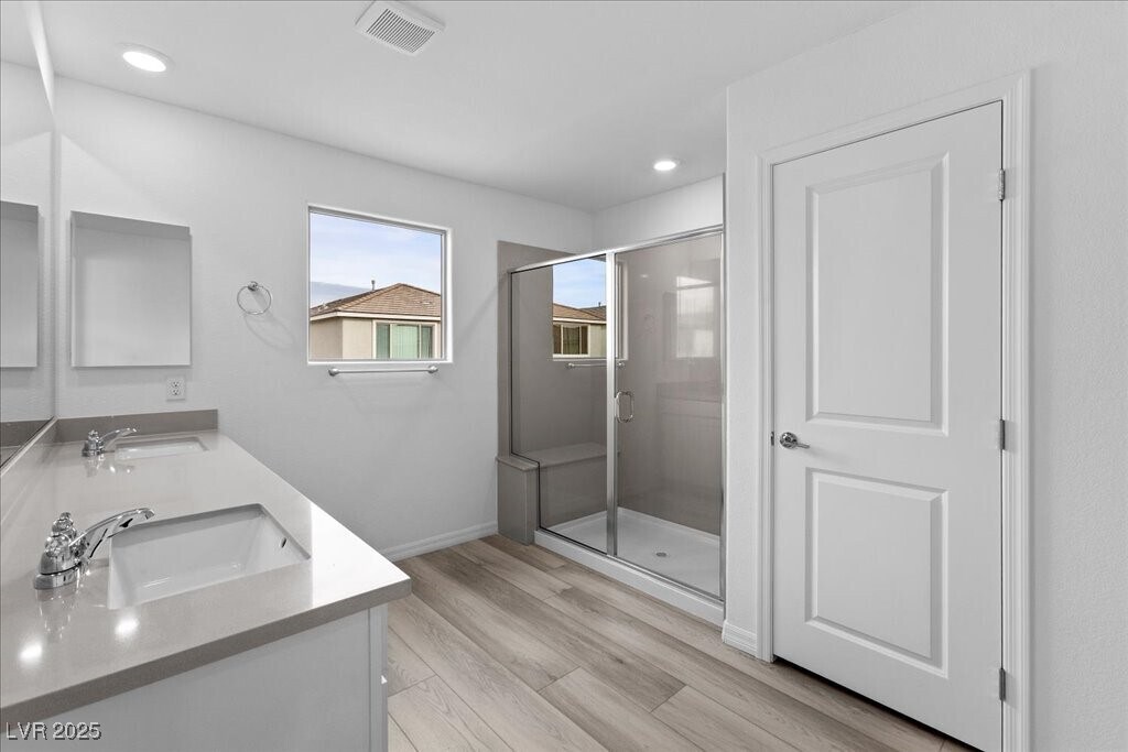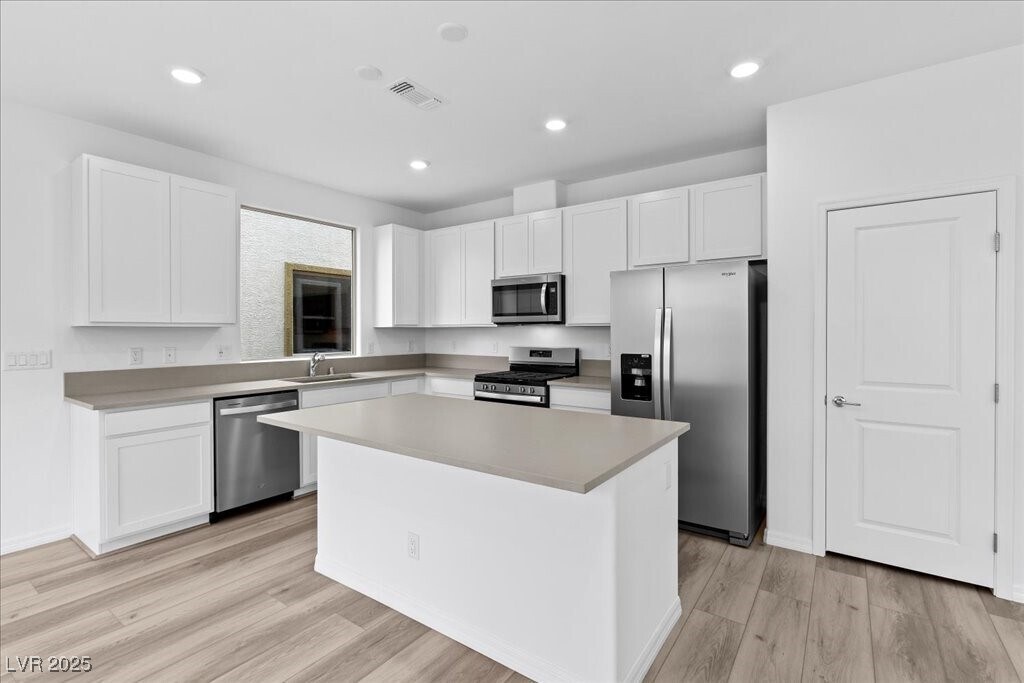 Be the first to enjoy this stunning 5-bedroom, 3-bath newly built home with a 2-car garage, ideally located in the desirable Southwest minutes away from the Las Vegas Blvd. Step inside to an open, bright floor plan with a spacious living room and abundant natural light. Modern kitchen features quartz countertops, a pantry, ample cabinets, a single-basin undermount sink, and brand-new appliances. The first floor includes a convenient bedroom and full bath. Upstairs, a generous loft offers space for family gatherings. The primary suite is separate from other bedrooms and includes recessed lighting, prewiring for ceiling fans, a large walk-in closet, double sinks, and a walk-in shower. Enjoy a separate laundry room with a new washer and dryer. Additional features include a tankless water heater and a low-maintenance backyard with turf and pavers for water efficiency. Owner-managed property (agent is not the manager). Income requirement: 2.5x rent. Credit requirement: 650+.