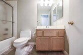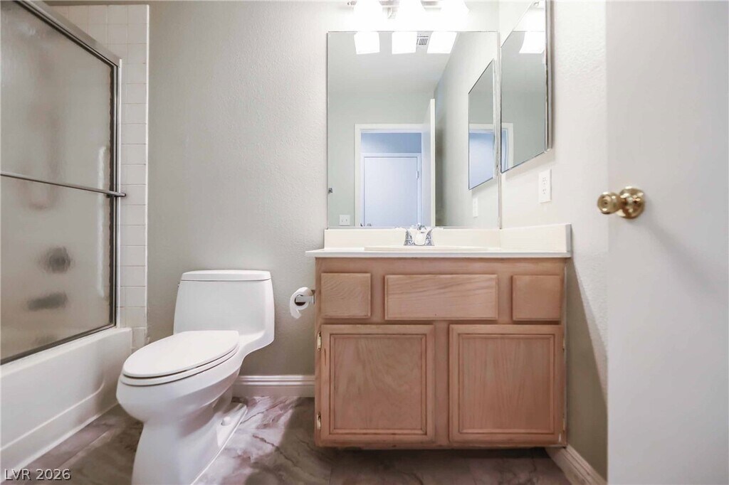 Welcome to this charming and move-in-ready 2-story townhome located in a desirable gated community! This inviting 2-bedroom, 2 full bath home features a versatile layout with one bedroom and full bath conveniently located downstairs—perfect for guests or a home office. Step through your private front courtyard with lush palm trees and into a bright, open floor plan with soaring vaulted ceilings, tile flooring, and elegant shutters throughout. The spacious kitchen comes fully equipped with all appliances included. Upstairs, retreat to the private primary suite featuring a walk-in closet. Enjoy resort-style living with access to the community pool and spa, all just minutes from the Las Vegas Strip, shopping, dining, and entertainment!