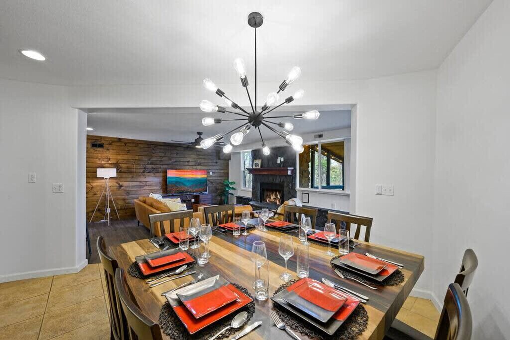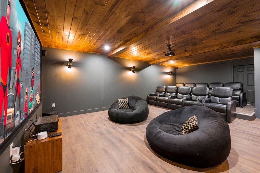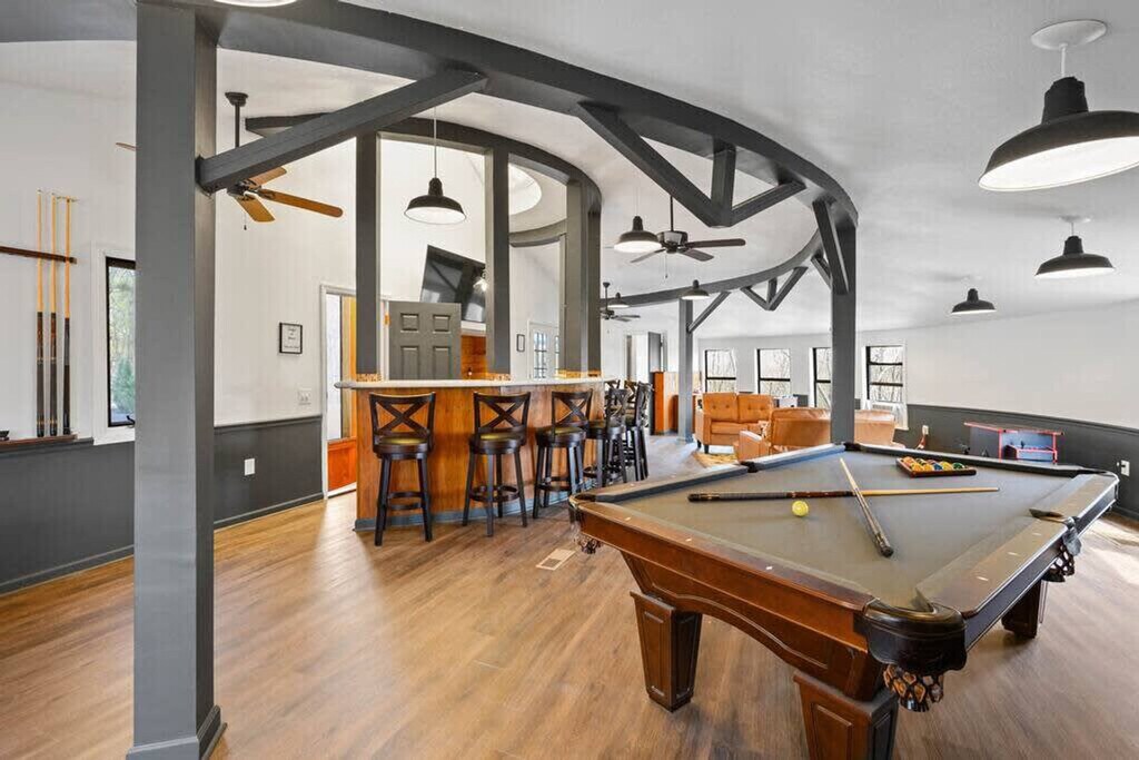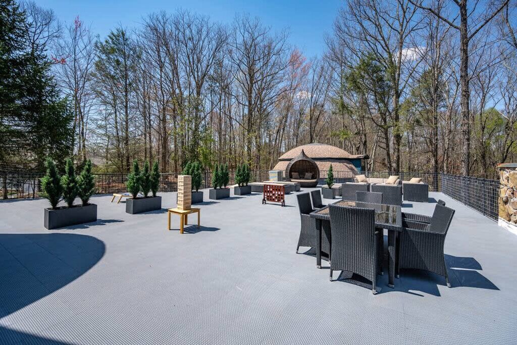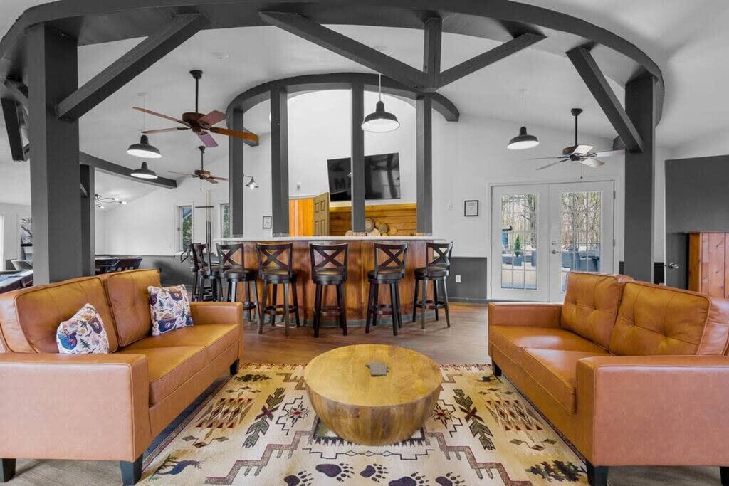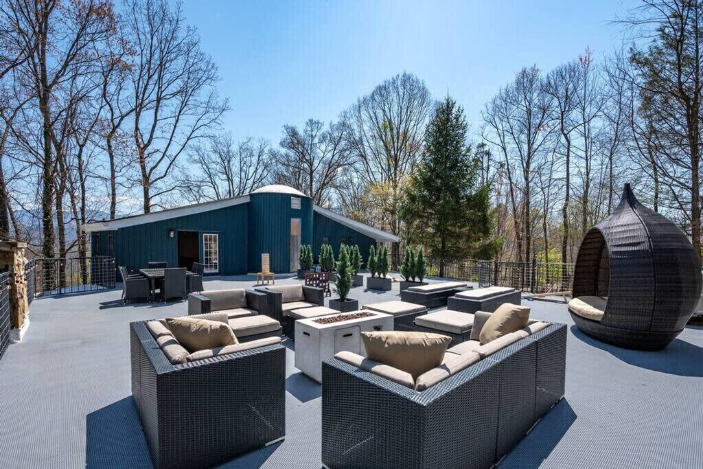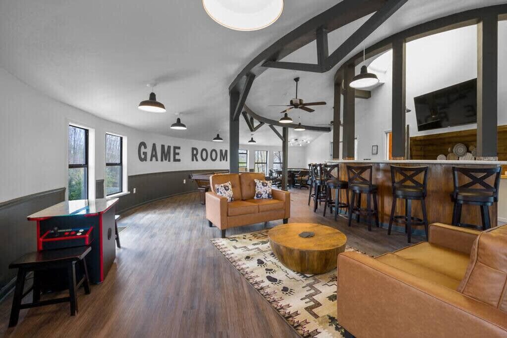 The advertised rate of $8,923/month is the lowest available price, based on a 1 month(s) stay with a move-in date of April 17, 2026. Rates vary depending on the duration of stay, season, and other parameters. For exact pricing and additional pricing components, please visit our website and enter your desired move-in and move-out dates. The rate is applicable when billed upfront; it can be higher if billed in multiple payments. Feel at home in this unique cabin in Gatlinburg, offering incredible mountain views and a yurt-style guest house. Located just 5 miles from the Great Smoky Mountains National Park and downtown Gatlinburg, this property is stacked with amenities for all generations. This house is split into two parts: the main house and an attached yurt-style guest house. The main house features a fully equipped kitchen with modern appliances, including a custom butcher block coffee bar with drip coffee, a French press, a bean grinder, and a Keurig. The living room is completely renovated with new floors, modern rustic decor, leather furniture, and a fireplace, along with a 65" smart TV with cable. The property also boasts the largest rooftop patio in the Smokies, a massive movie theater, a sauna, a hot tub, and an incredible game room. The game room has a custom butcher block bar counter, mini fridge, ice machine, curved bar with 8 bar stools, 65" Smart TV, regulation size pool table, poker table with cards and chip set, multicade with all your classic arcade games, foosball table, conversation sofa set and full bathroom. The 2,000 square foot rooftop patio lounge includes a dining table, full lounge conversation set with propane fire pit, lounge chairs that fully recline, a covered bungalow daybed and string lighting. Outdoor games include cornhole, large connect four, and oversized Jenga. The guest house has a fully equipped kitchen, dining table that seats 4 people, smart TV and sofa. Outside, enjoy the hot tub with mountain views and a privacy screen, a back deck with two seats and an outdoor dining table with 4 seats, and 4 wooden rocking chairs with mountain views. The infrared sauna seats up to 4 people and has a glass door to enjoy the mountain views. A large, park-style charcoal grill and grill station is located in the front of the house along the rock wall. Pets are welcome for a fee of $250 for the first pet and $100 for each additional pet. The neighborhood is a spacious and quiet community, nestled in the mountains, yet just a few miles away from the GSMNP, downtown Gatlinburg, Pigeon Forge, Dollywood, and the Arts and Crafts District. The closest grocery store is just 5 minutes away. Primary guests must be at least 25 years of age to book this property. Check-in is at 4 pm and check-out is at 10 am. Please do not allow dogs in the beds or sofas. Quiet time is after 10 PM. Next to the living room is a cozy office. Registration Number: 2484 [SI]