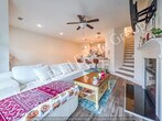 Beautiful 3-bedroom, 2.5-bath townhome offers a bright, open layout designed for comfortable everyday living. The main level features Mohawk RevWood flooring, a spacious living area with fireplace and built-in bookshelves, and plenty of natural light. The kitchen is perfect for cooking and gathering, with 42" cabinets, quartz countertops, stainless steel appliances (including side-by-side refrigerator), and a breakfast bar/island. Upstairs, the primary suite feels like a retreat with tray ceilings, a large walk-in closet, and a private bath featuring double vanities, a garden tub, and a separate shower. Two additional spacious bedrooms share a full bathroom, offering flexibility for family, guests, or a home office. Enjoy outdoor space in the fully fenced backyard, ideal for pets or relaxing, and the convenience of a 1-car garage plus driveway parking for two vehicles. 2" blinds are included throughout, and the HOA takes care of lawn maintenance, giving you more time to enjoy your home. Located in a new community in Lithonia, just off Covington Highway, with easy access to I-20, shopping, dining, and daily conveniences.