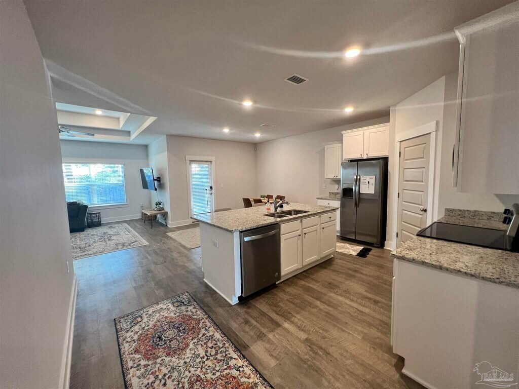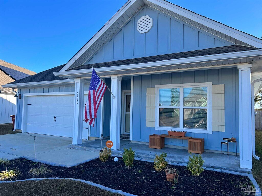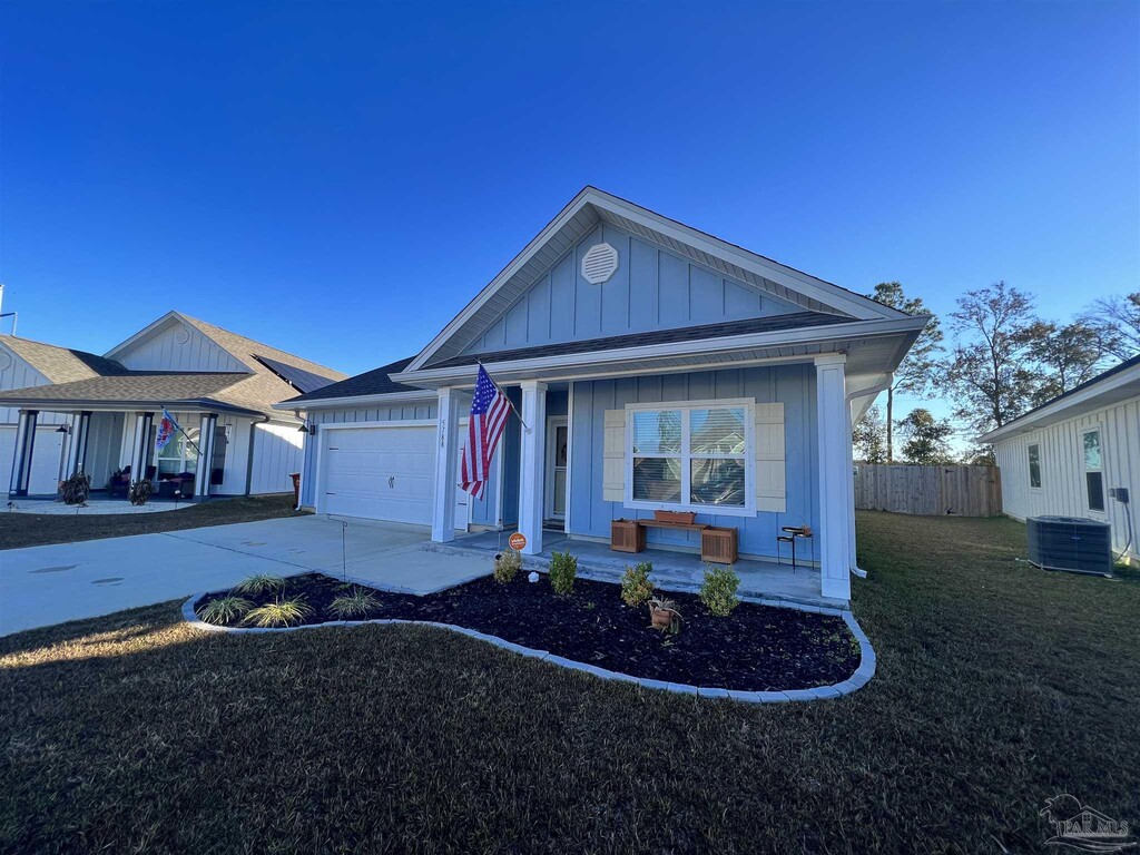 Craftsman style 4 bedroom rental home in Pace! This home has a very open floorplan. Kitchen is open to the living room and dining room and with granite countertops,stainless appliances,a large corner pantry,and double-sided center island. The Master Bedroom has a trey ceiling with a separate shower and garden tub in the master bath. The master bath also features double granite vanities,walk in closet,and separate water closet. Hall bathroom and laundry are convenient to the other 3 bedrooms. Home has a 2 car garage with a covered patio and covered front porch. This property requires participation in the MSPM Tenant Benefit Package for an additional monthly fee. Additional information on this program can be found upon submission of application
